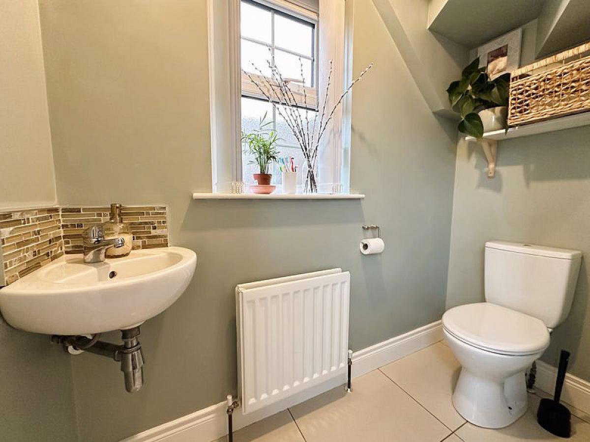With low flush WC and wash hand basin, tiled floor, double radiator.