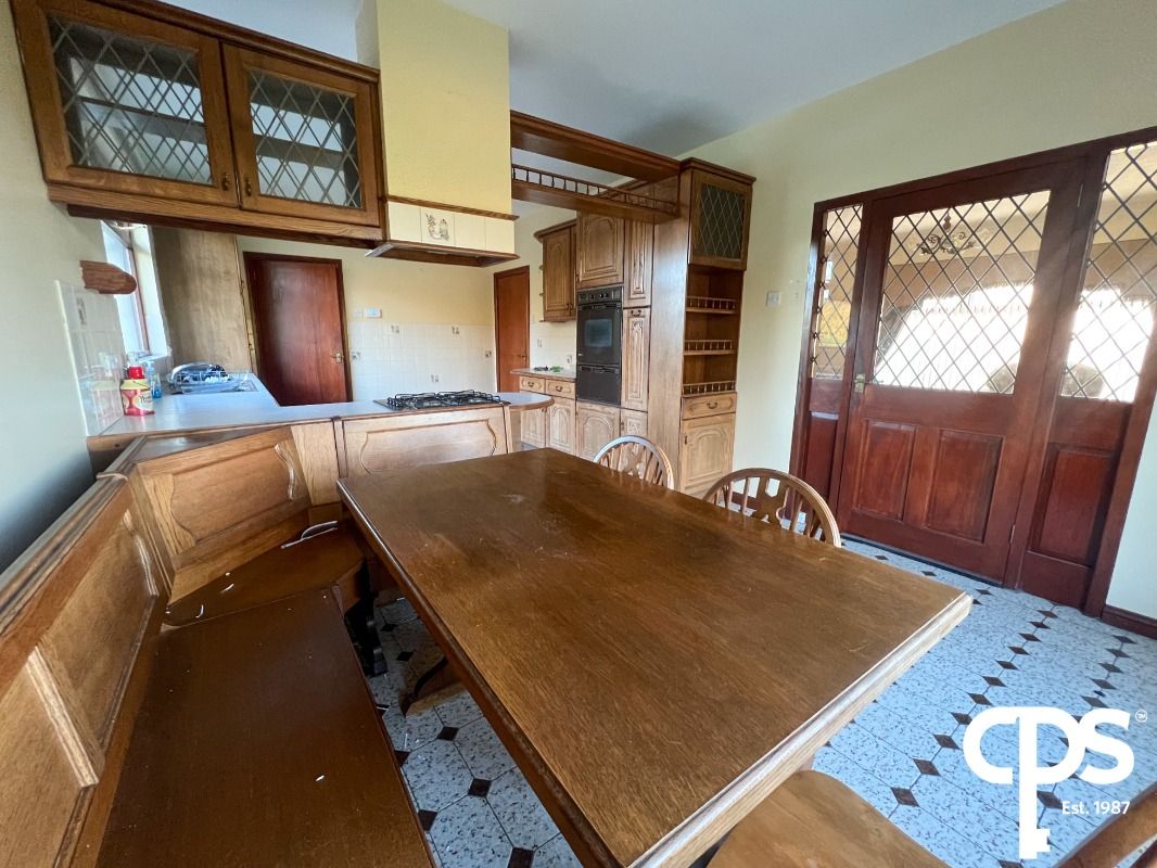 The kitchen is set at the rear of the house with windows looking out to the rear and the side gardens.It has high & low units, built in seating area and tiled floors.