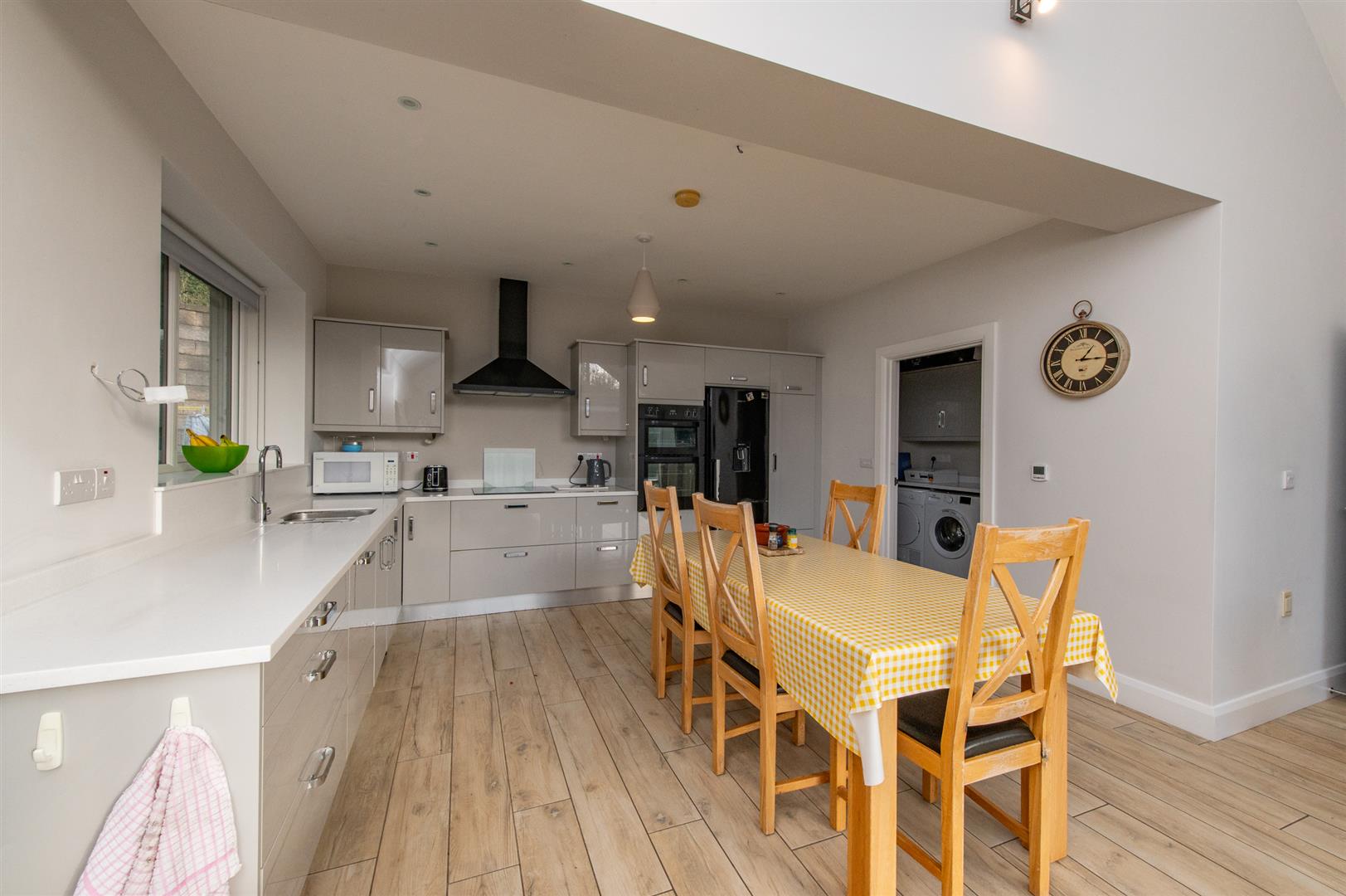 Entrance hallway with closet space and access to the W.C leading into the hallway with access to the bedrooms, following onto the spacious open plan area providing the perfect Living, Dining & Kitchen space for entertaining with the stunning feature window with views & fitted with multi fuel stove. Kitchen fitted with a modern range of units to include eye level grill & oven, space for fridge freezer, integrated Dishwasher with recessed lighting and tiled flooring throughout. Separate utility are with range of high and low level units, sink & space for appliances. Bedroom one with tiled flooring, walk in dressing area with ensuite and the additional feature of corner window. Ensuite comprising Bath, W.C and wash hand basin with tiled floor & part tiled walls. Bedroom two with wood flooring, rear view aspect & ensuite comprising walk in shower, W.C, wash hand basin with fully tiled walls and floor. Bedroom three with tiled floor and rear view aspect.