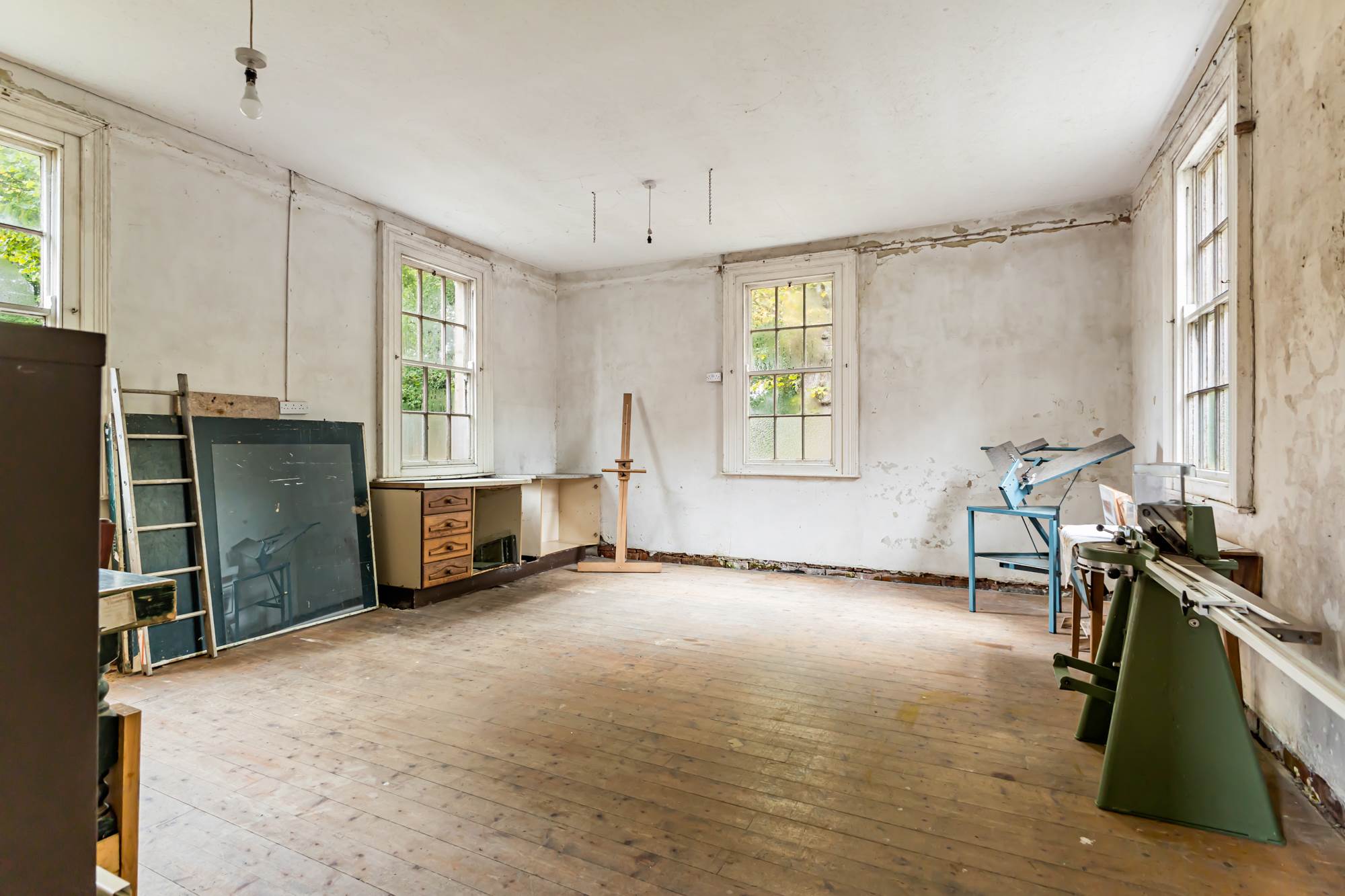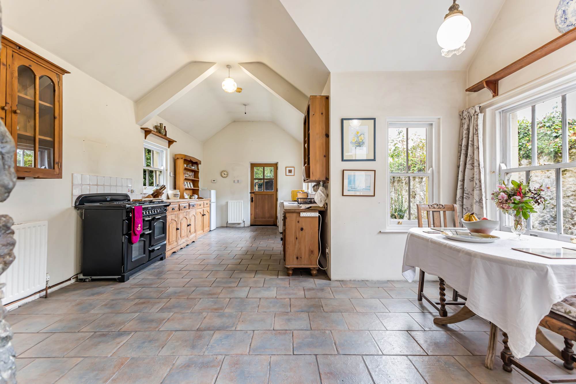 Dating back to the early 20th century, the property retains many of its original features, from vaulted ceilings and exposed stonework to solid timber doors and open fireplaces, creating an atmosphere of timeless charm. With three bedrooms, three reception rooms, and large, light-filled spaces, this home would suit a wide range of buyers, from families looking for something with character, to creatives or professionals seeking live-work space with architectural interest.