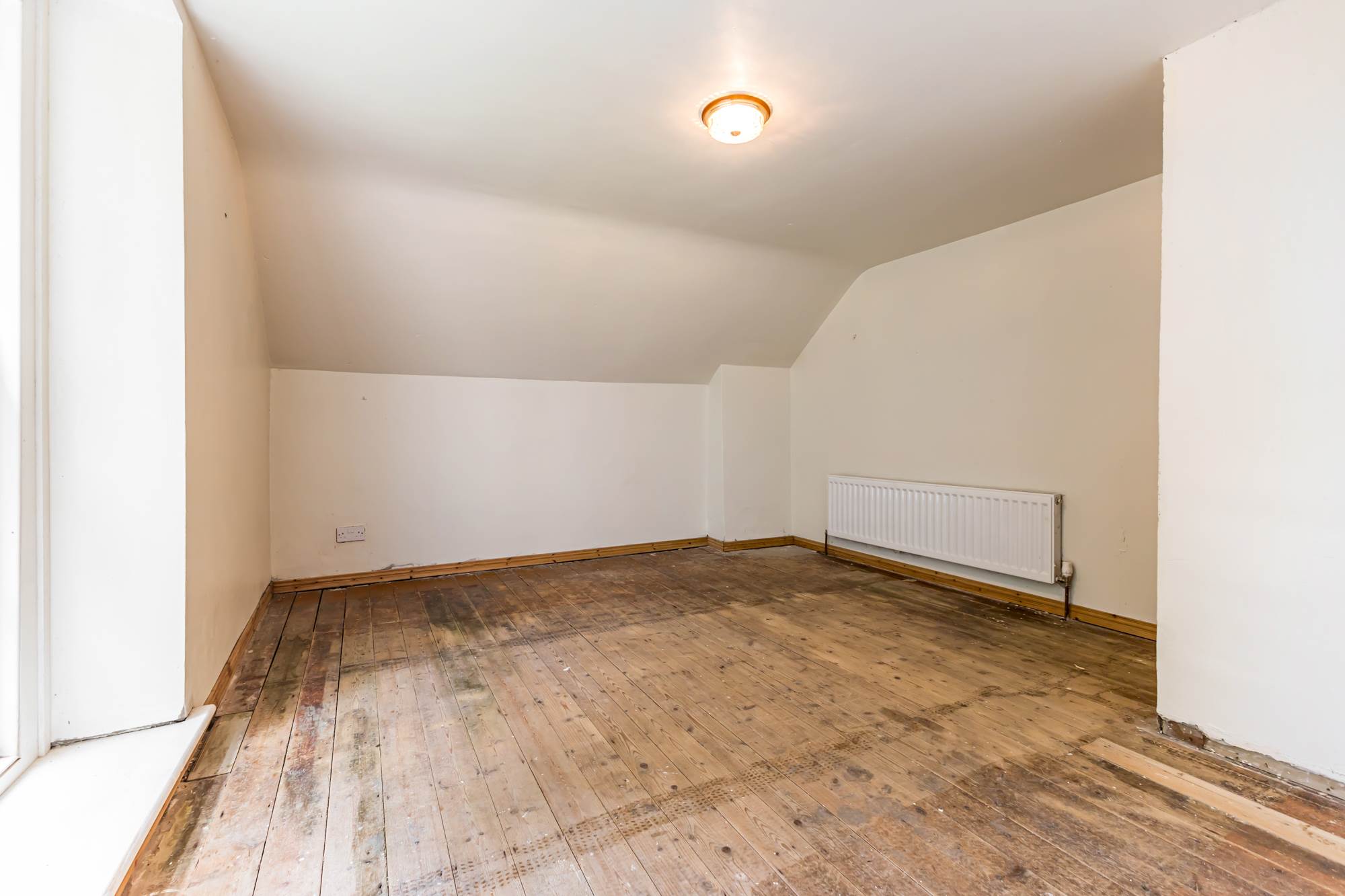 At widest points. Triple aspect to front and both sides, original exposed and treated timber wooden floor, access hatch to roofspace which is part floored.