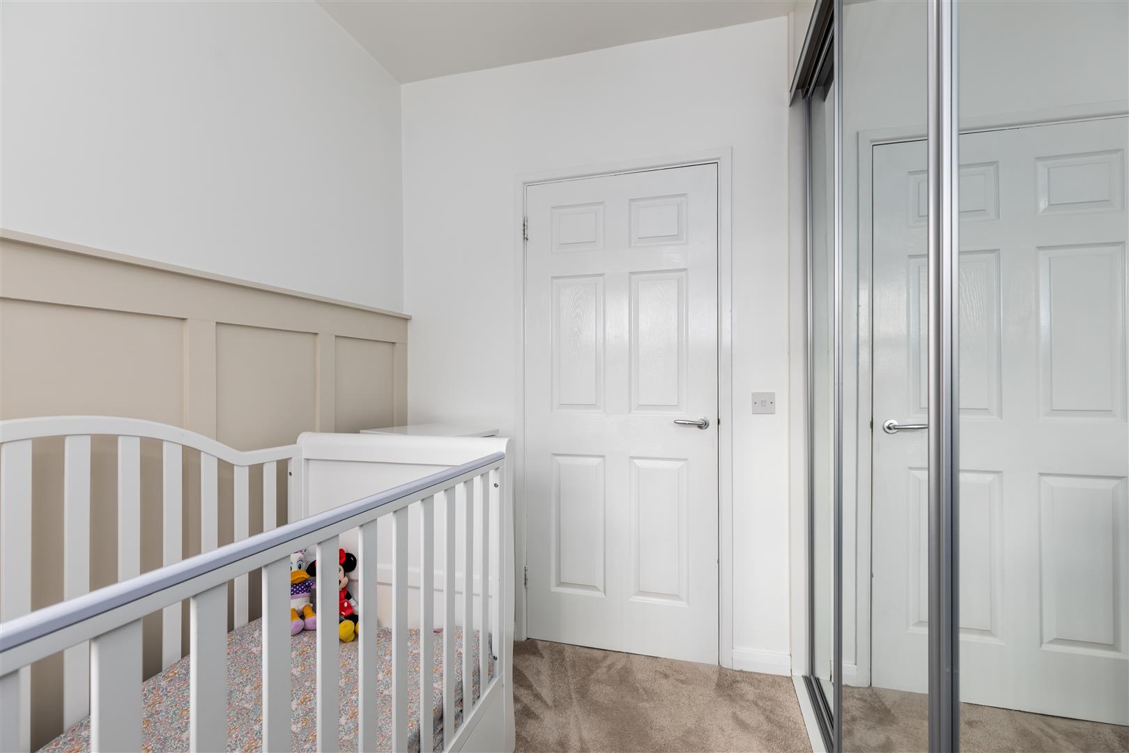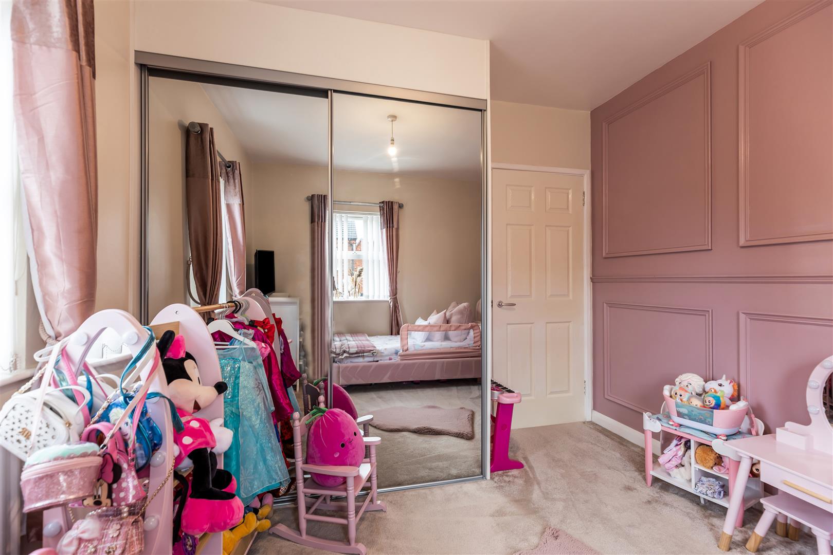 Built-in mirrored slide robes, 1/2 panelled walls, panelled radiator.