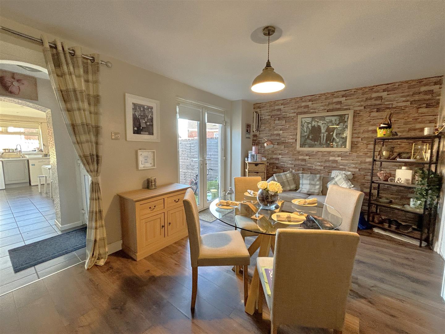 Wood laminate floor, double panelled radiator, understairs storage, uPvc double glazed patio doors to rear.