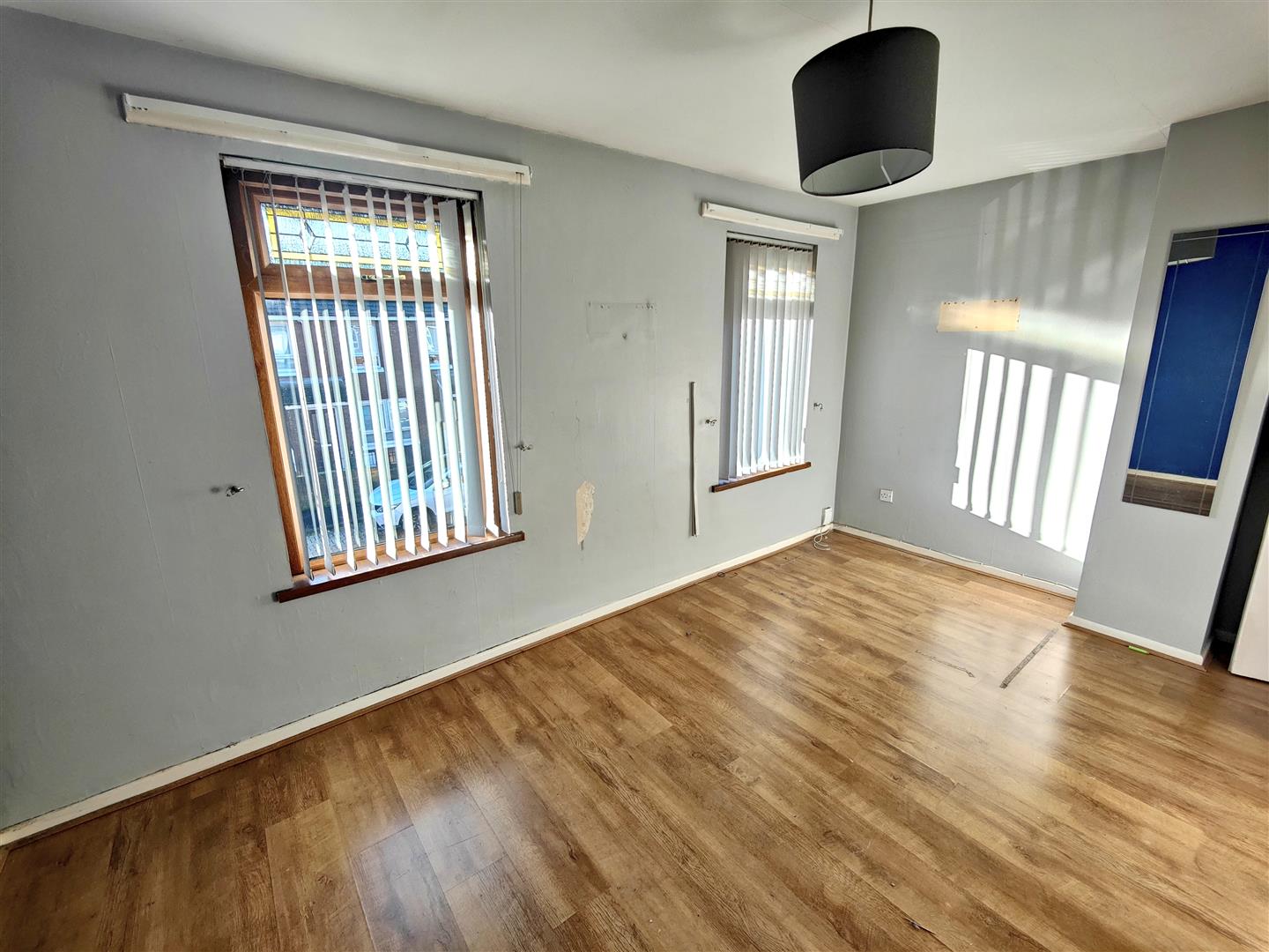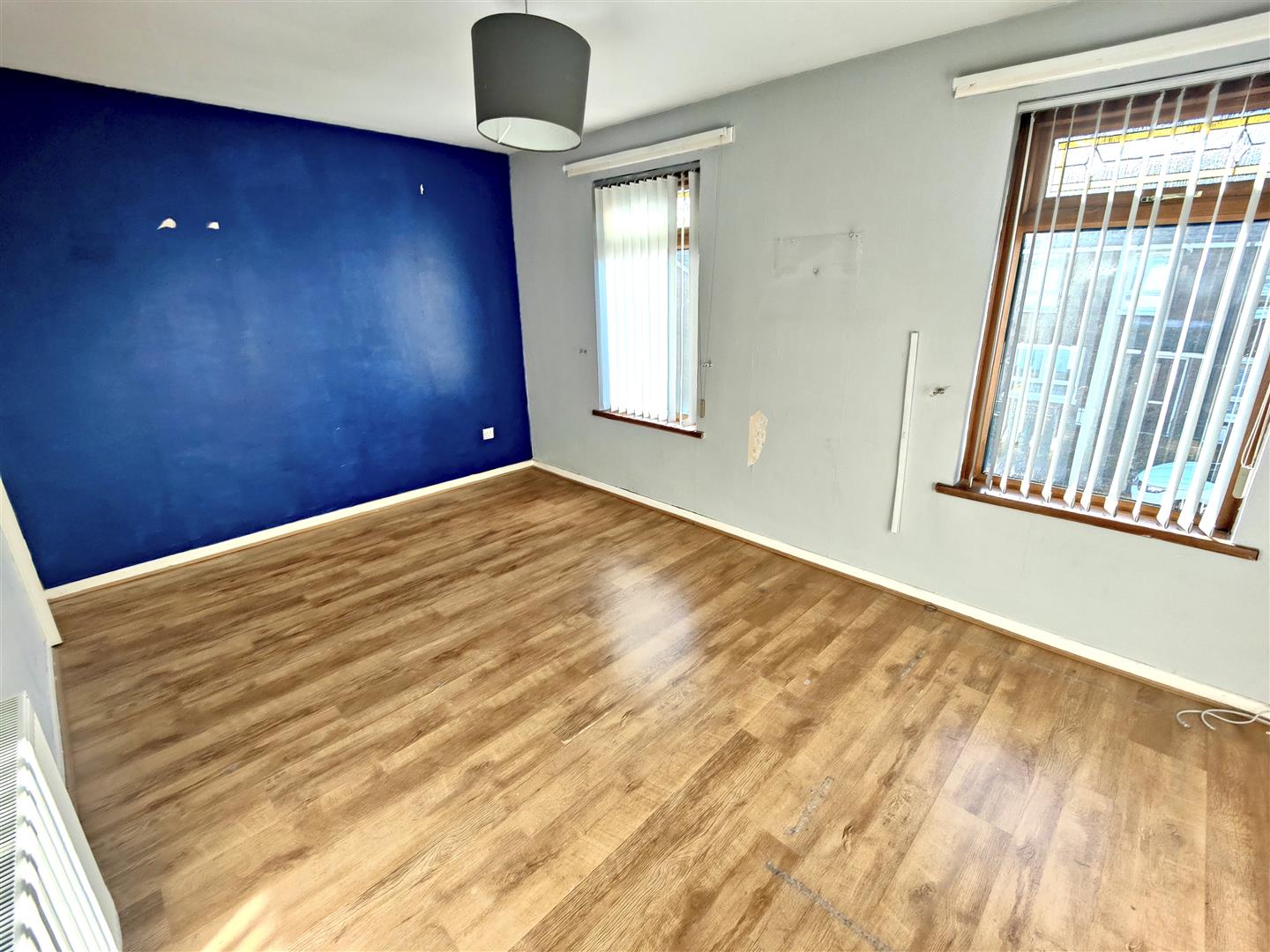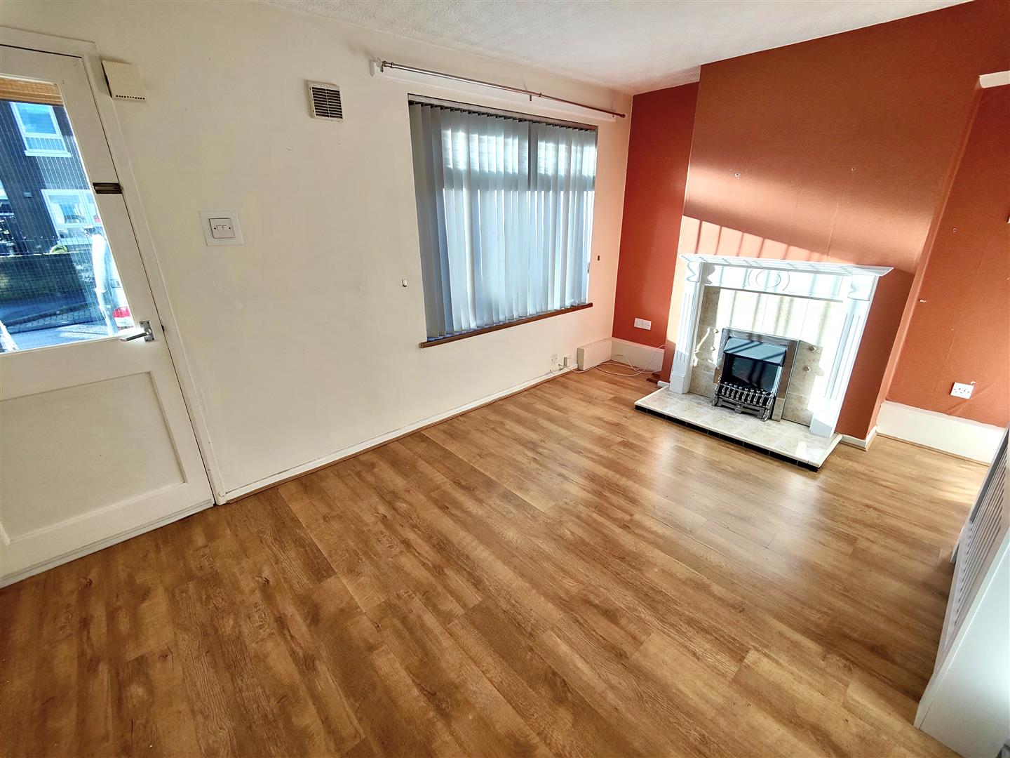 Upvc double glazed entrance door, wood laminate floor.