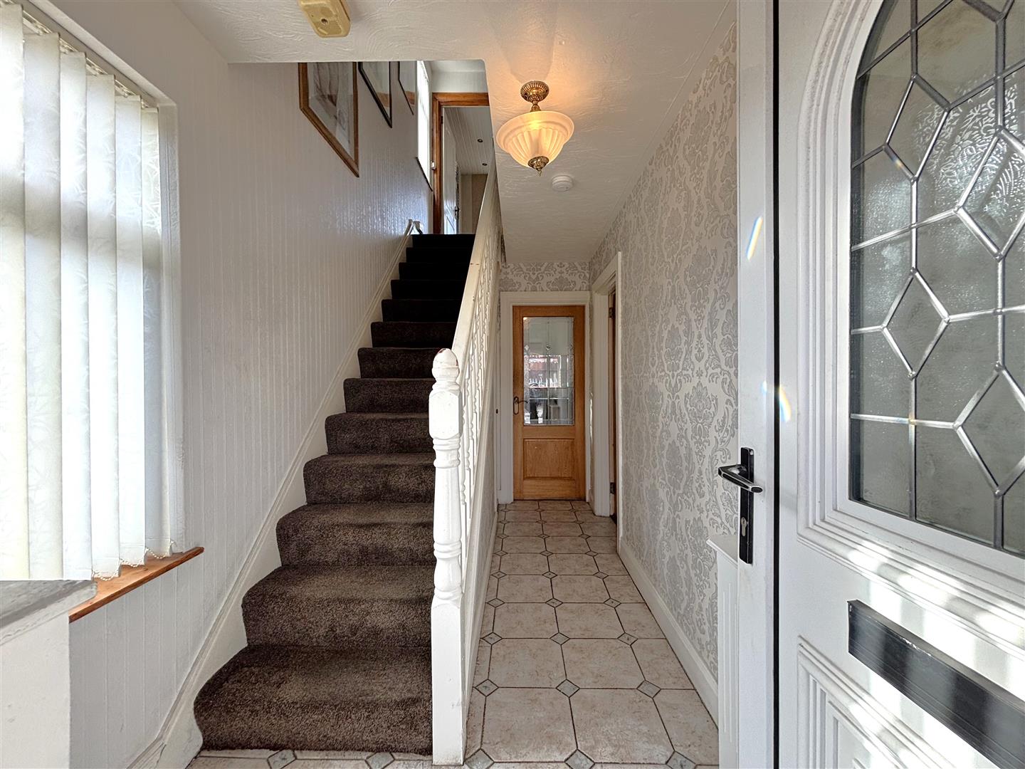 Upvc double glazed entrance door, panelled radiator, ceramic tiled floor, understairs storage.