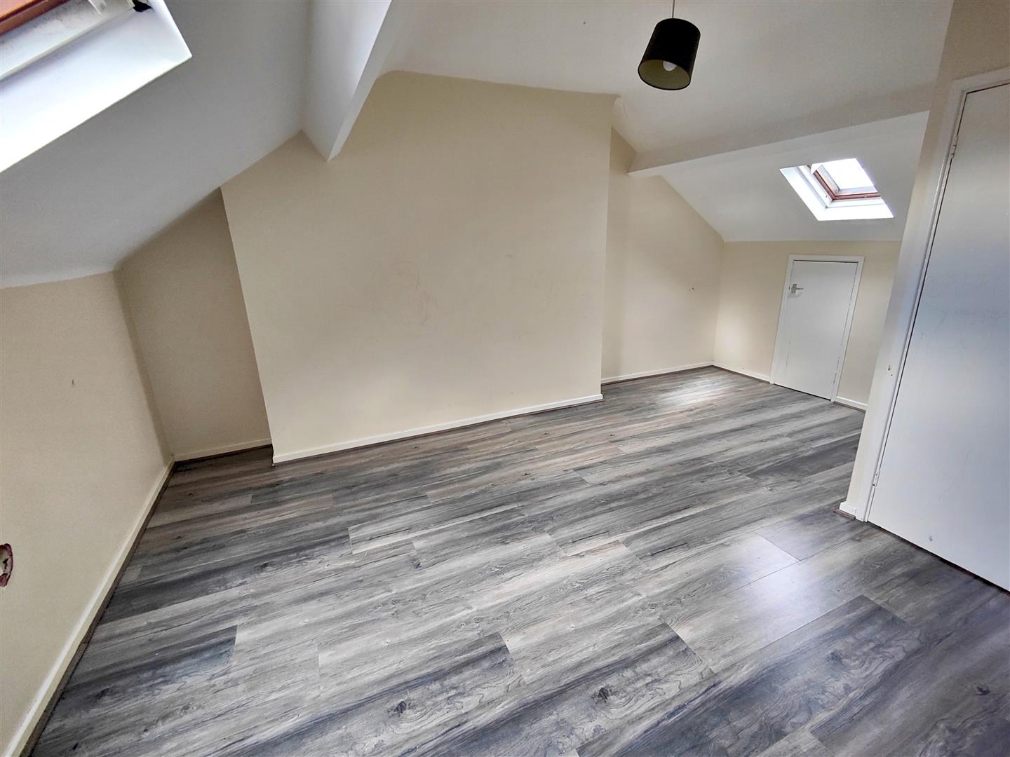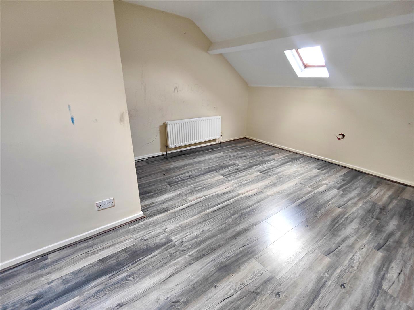 At widest, wood laminate floor, 2 velux rooflights, under eaves storage, concealed gas boiler, double panelled radiator.