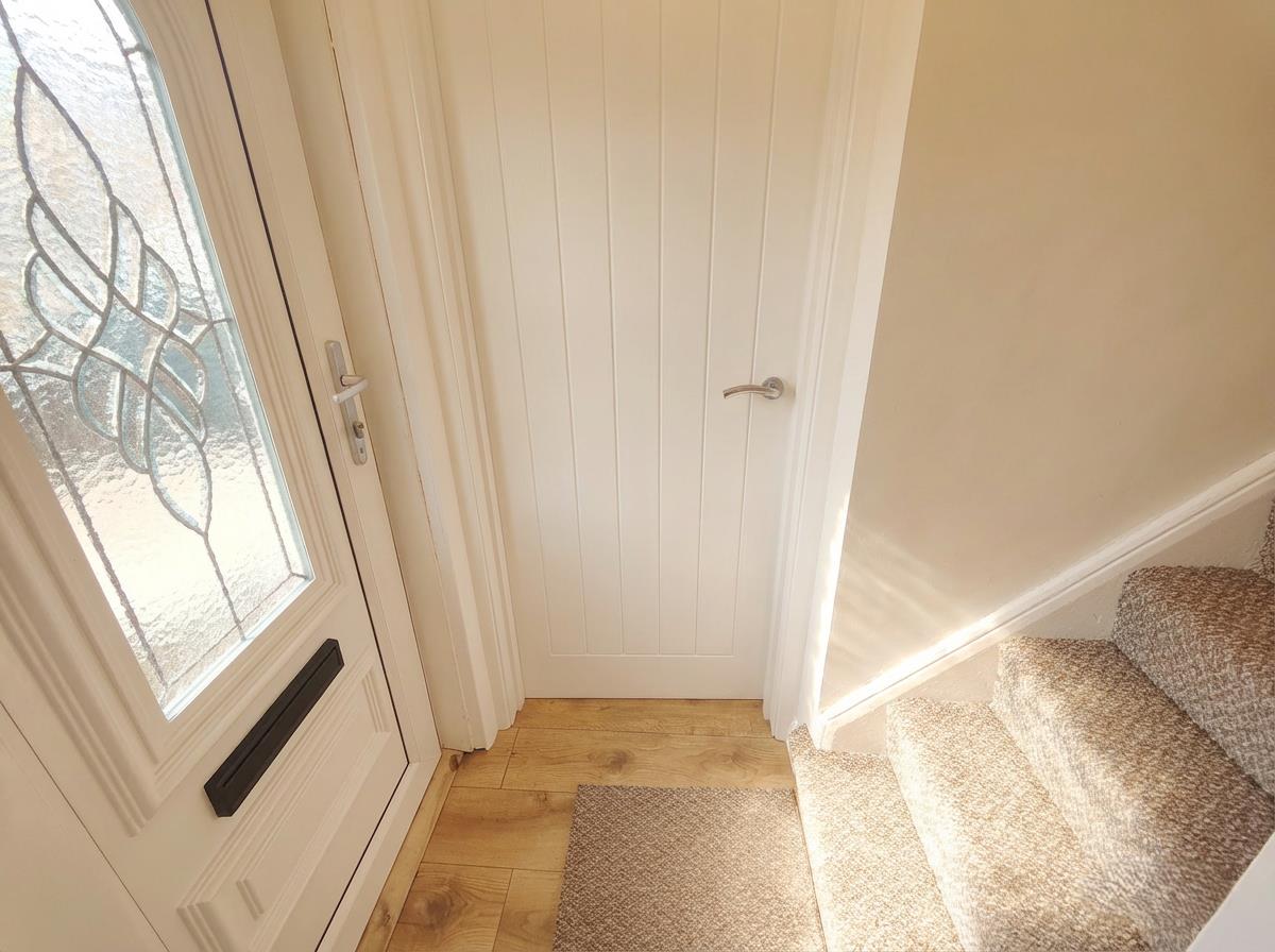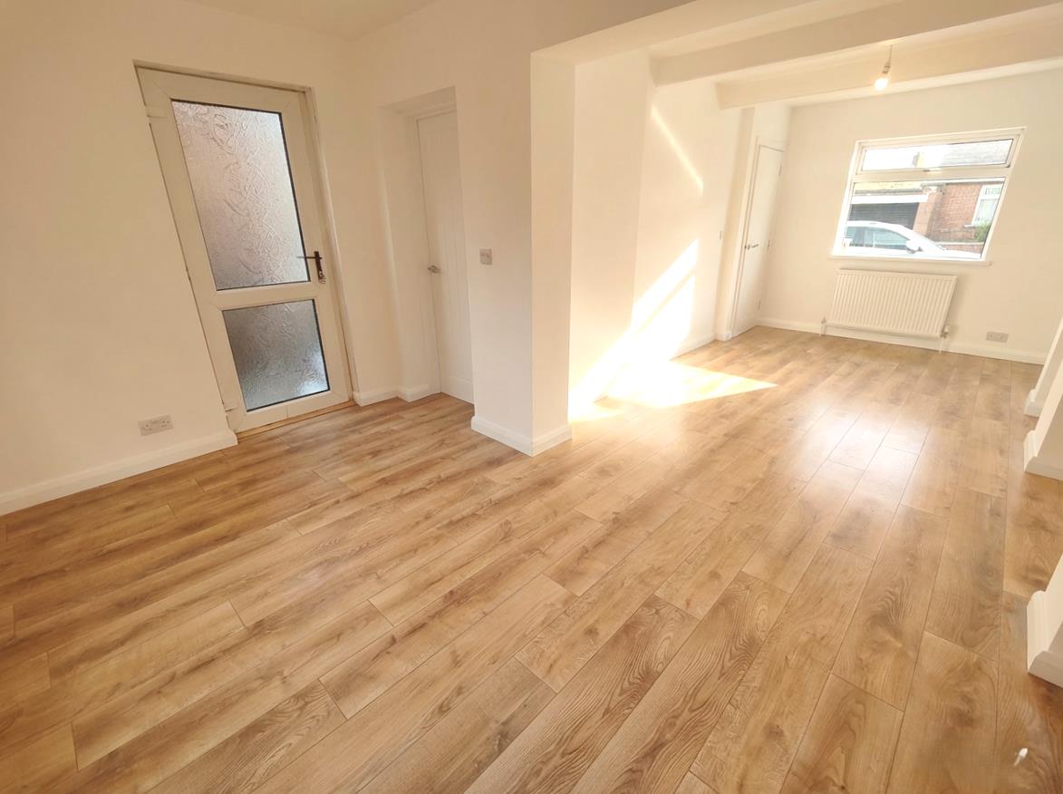 Wood laminate floor, double panelled radiator, pvc door to rear.