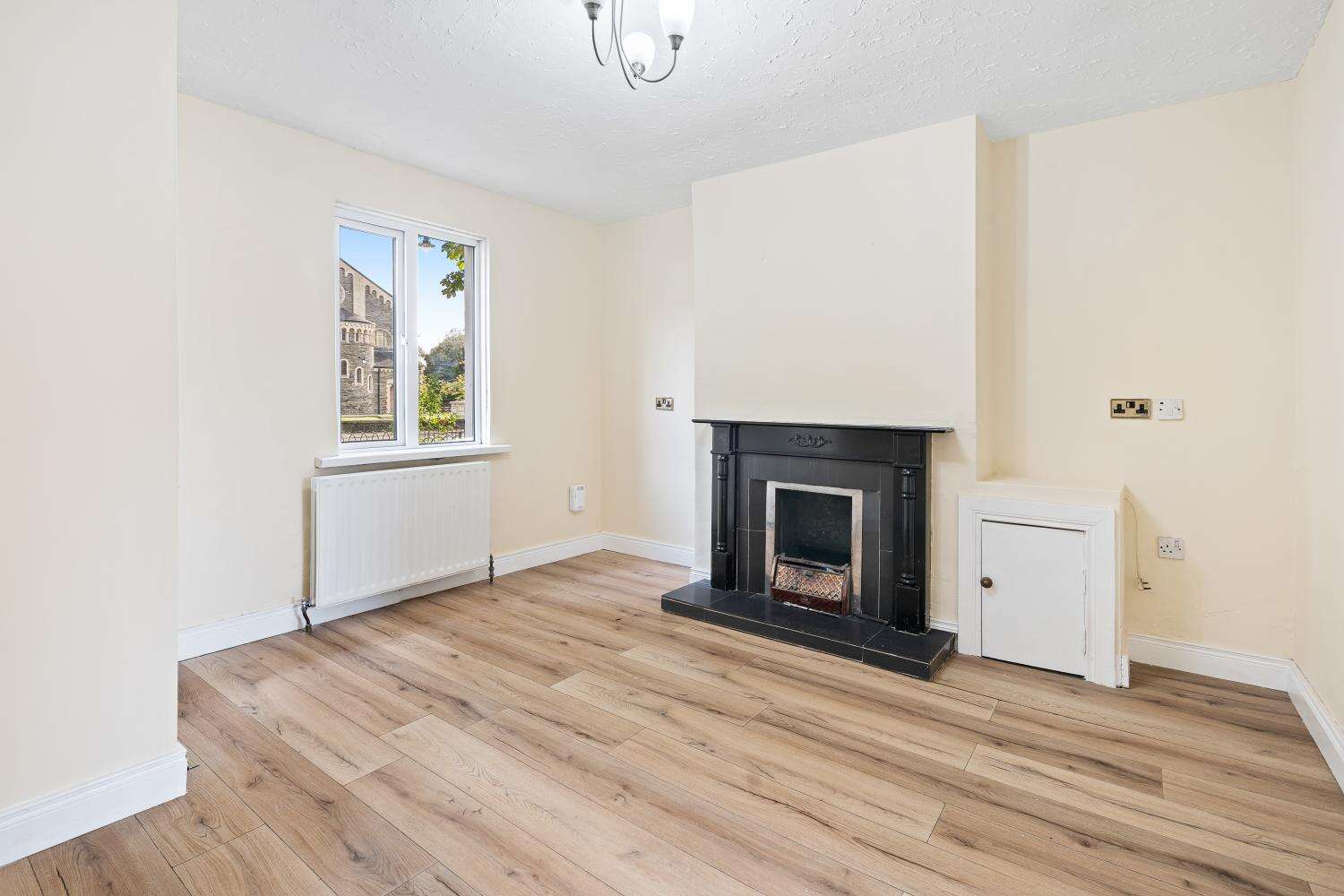 - Wooden fireplace with open fire availability and back boiler