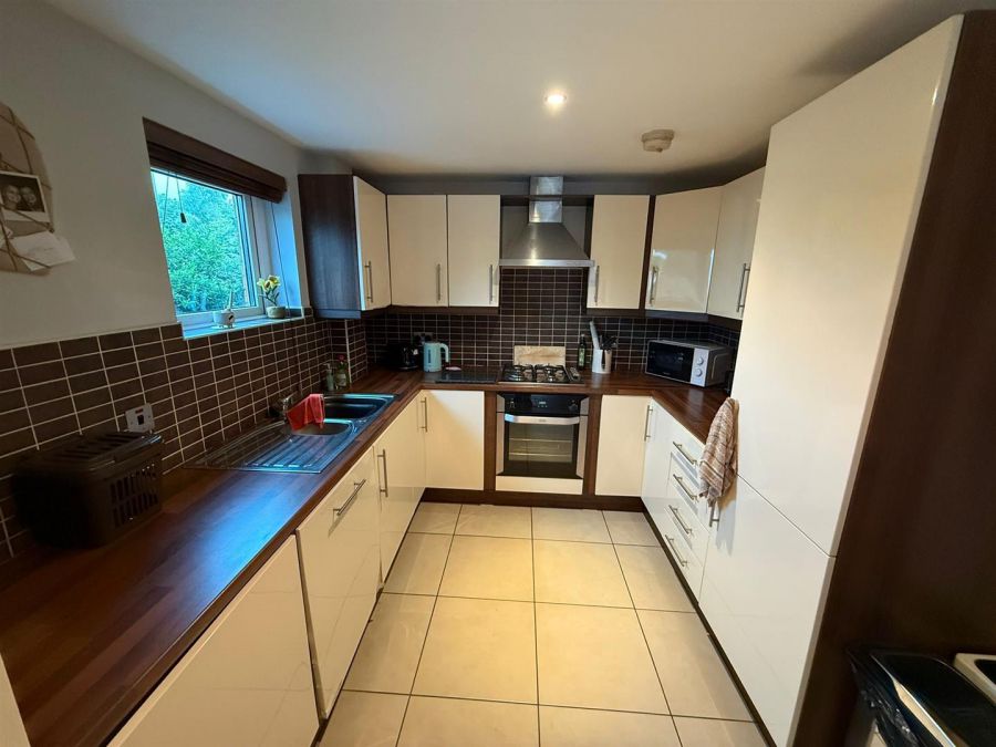 Range of high and low level units, integrated appliances to include fridge / freezer, oven, 4 ring gas hob & stainless steel extractor fan, built washing machine & dishwasher, Ideal gas fired boiler, part tiled walls and tiled floor.