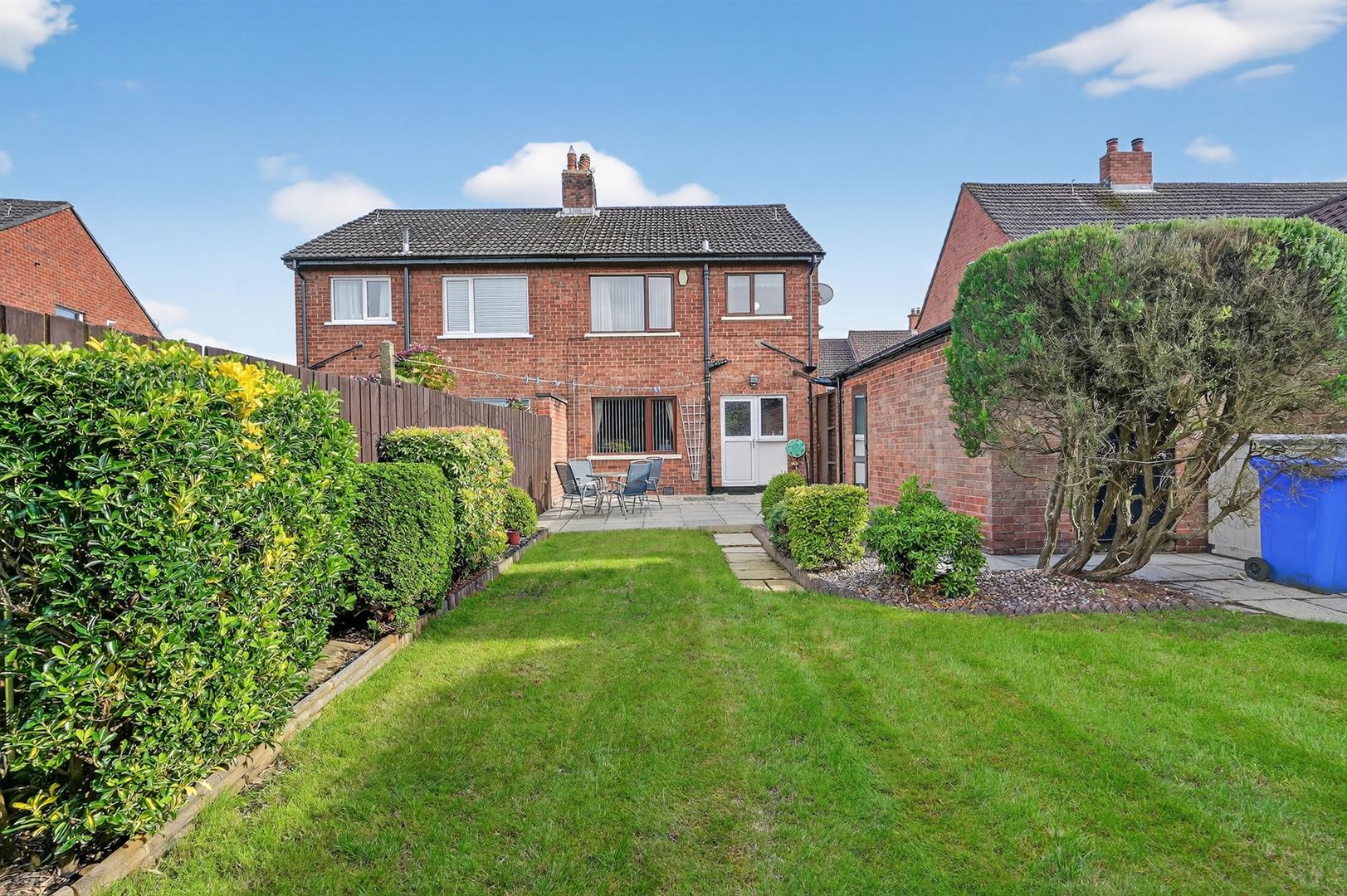 Enclosed south west facing garden in lawn with paved patio. Driveway to front. Detached garage.