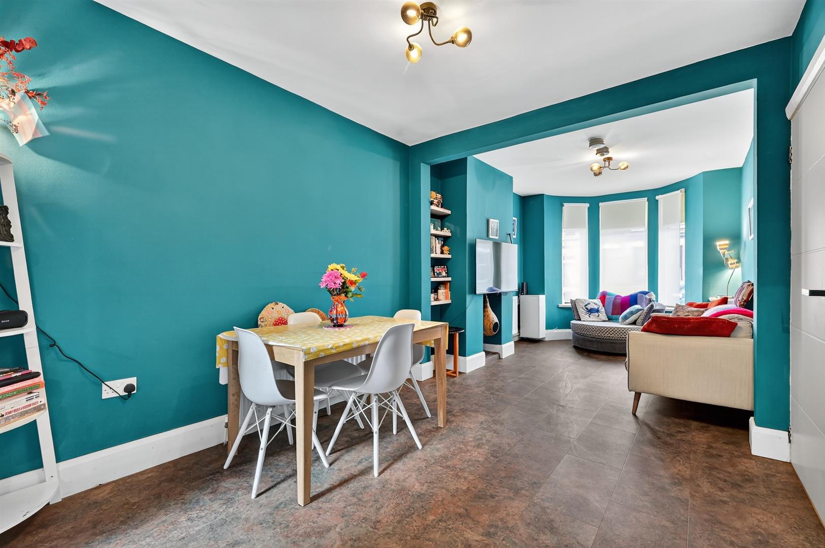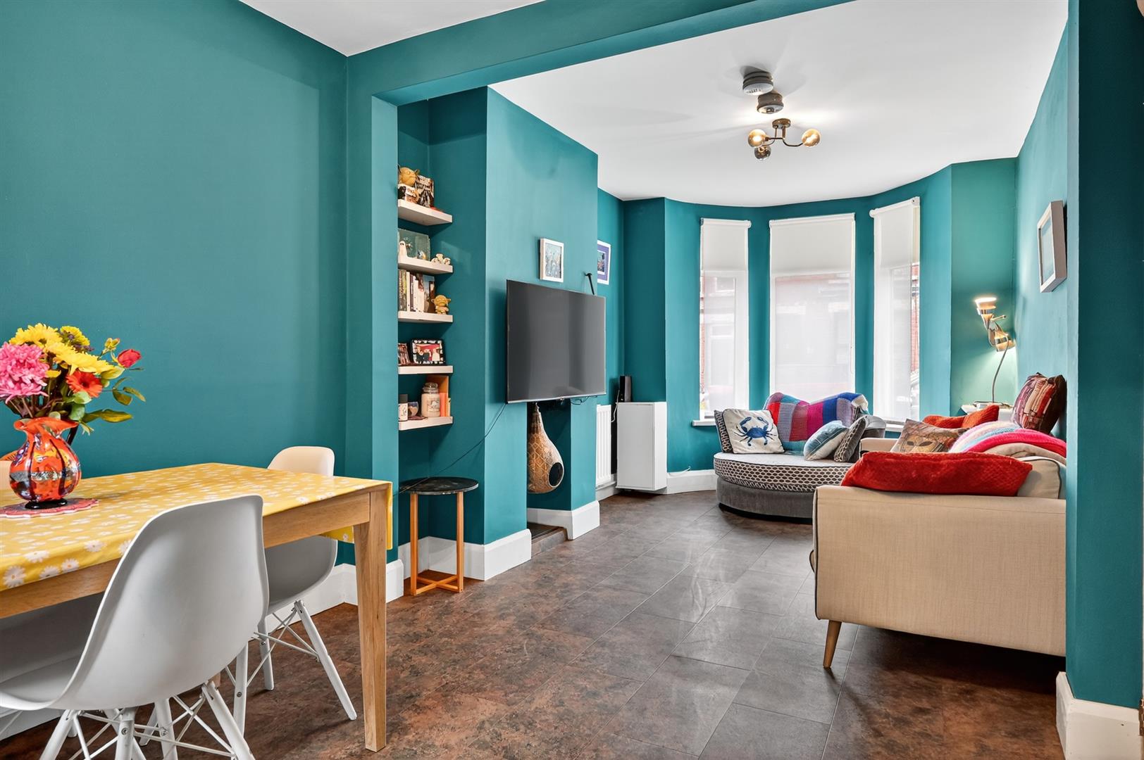 Front Living Room With Bay Window Open Plan To Dining Room