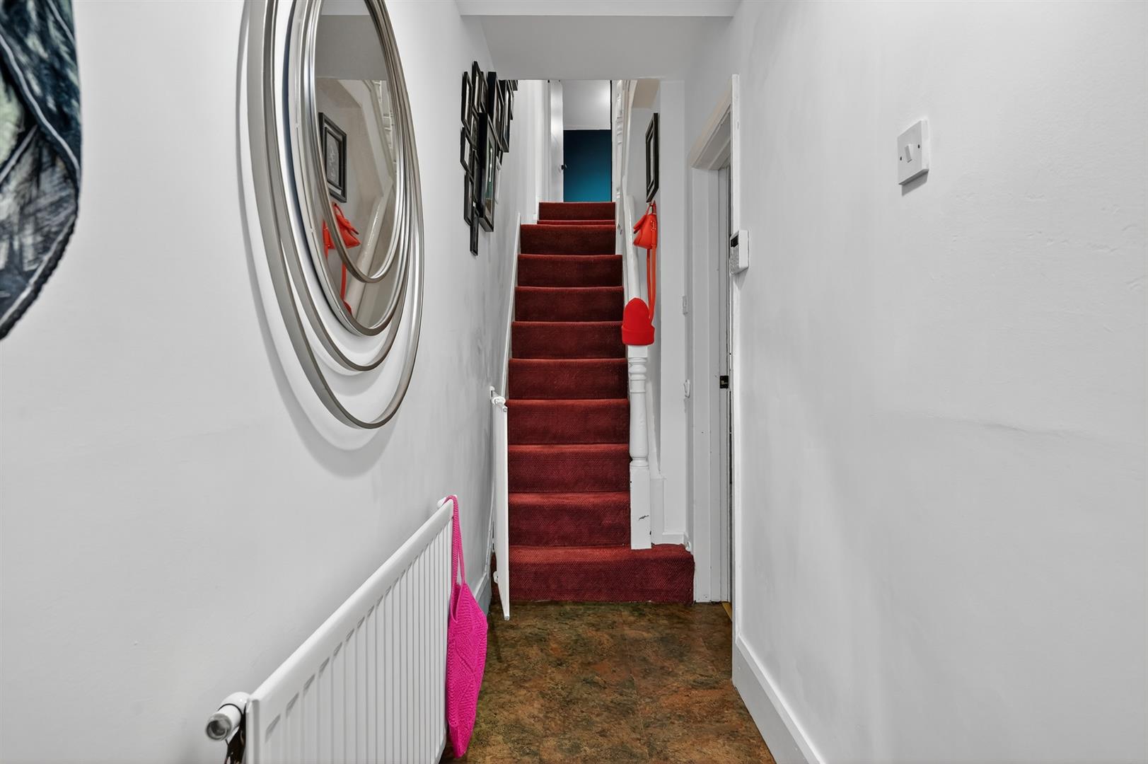 Door to enclosed rear yard. Storage under stairs.
