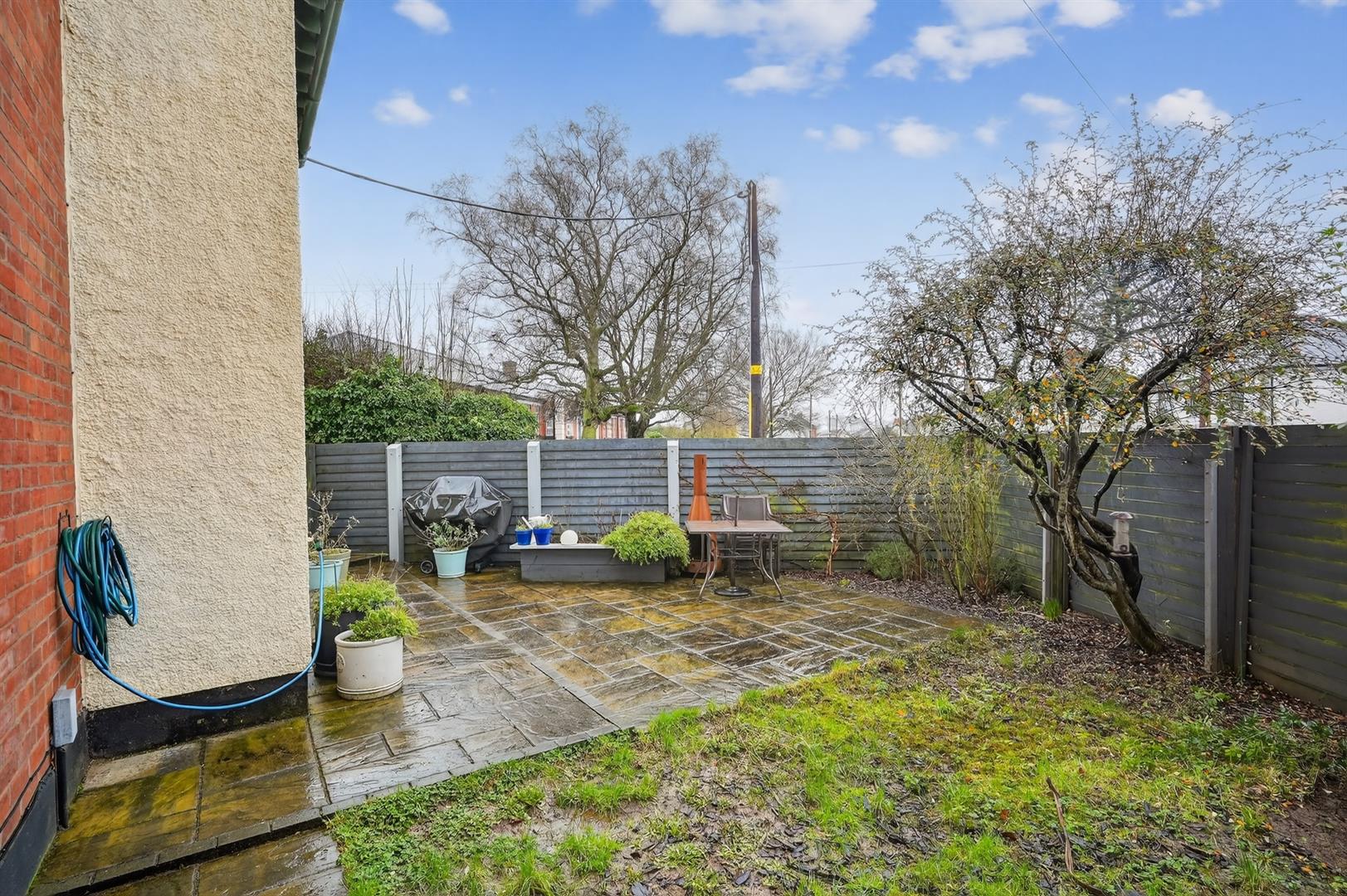 Enclosed rear garden in lawn with patio area. Off street parking. Front garden area.