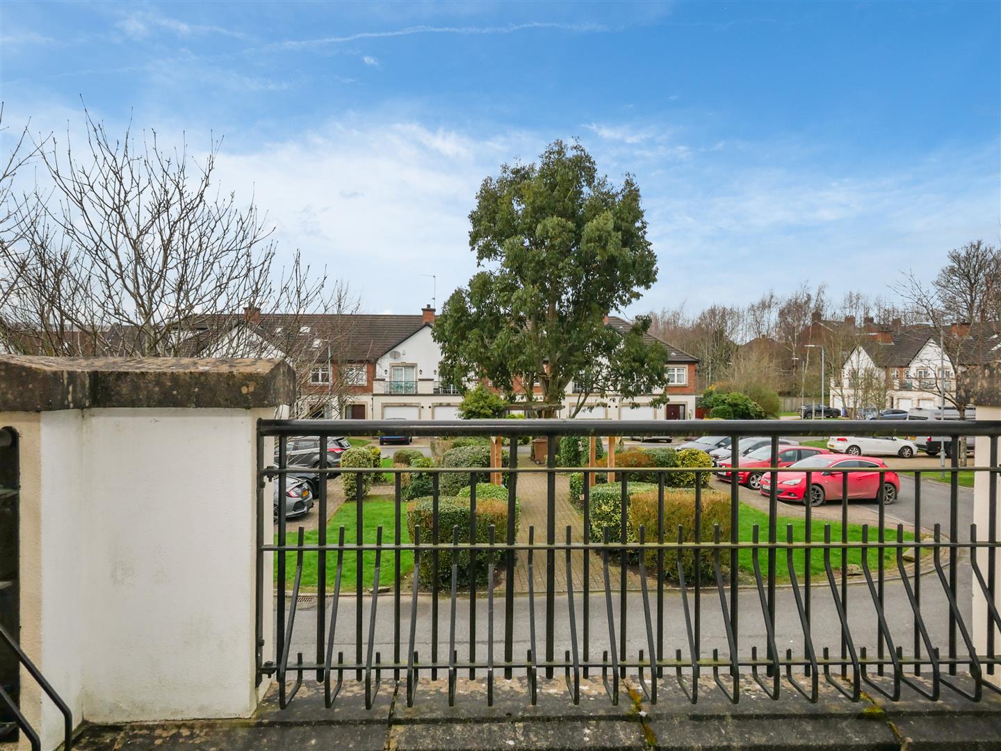 Access via sliding glazed doors to balcony overlooking communal green space in front of the property.