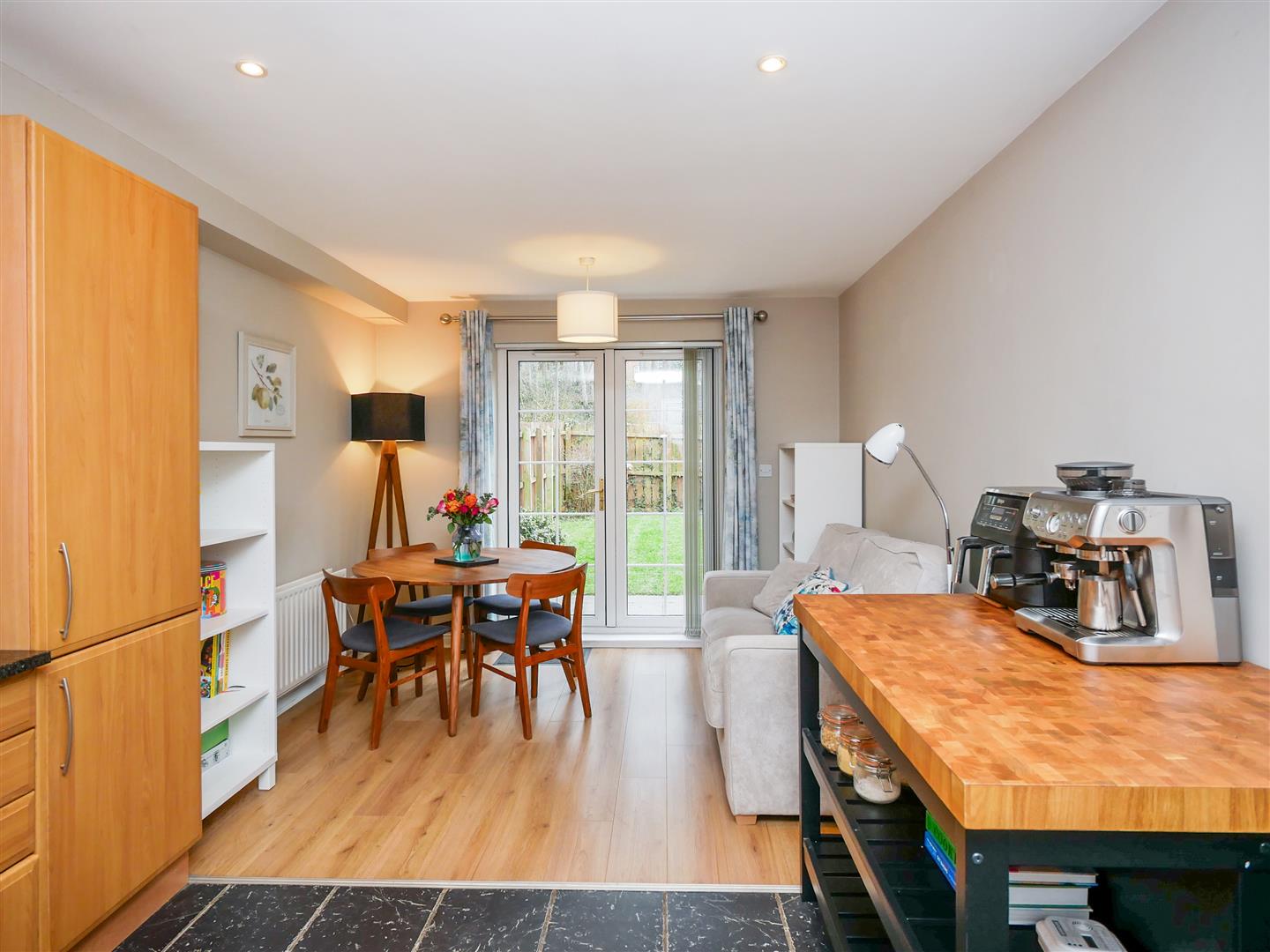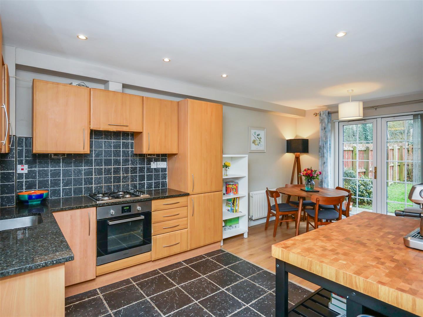 Excellent range of high and low level built-in units, granite work surfaces, built-in 4 ring gas hob with under oven and extractor fan. Stainless steel sink unit with mixer taps. Integrated fridge freezer and washing machine. Tiled floor to kitchen area and laminate flooring to living /dining area. Double glass panelled doors to garden.