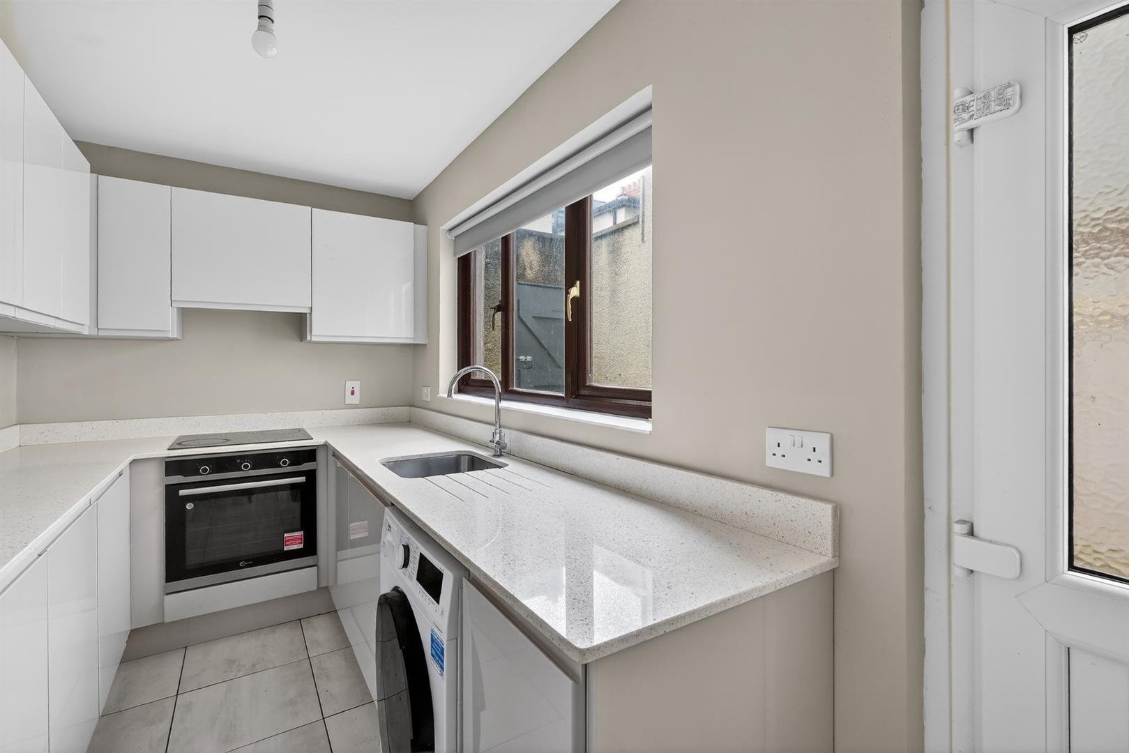 Excellent range of high and low level units, integrated oven, 4 ring hob, extractor fan, integrated fridge freezer, plumbed for washing machine, stainless steel sink unit with mixer tap.