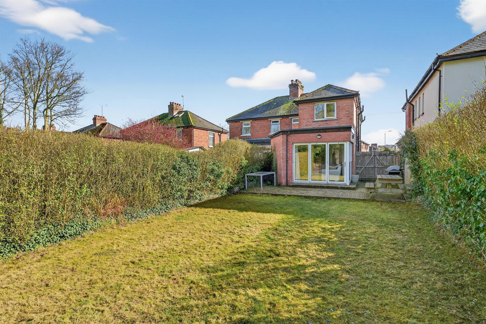 Spacious rear garden in lawn with patio area. Driveway to front providing off street parking.