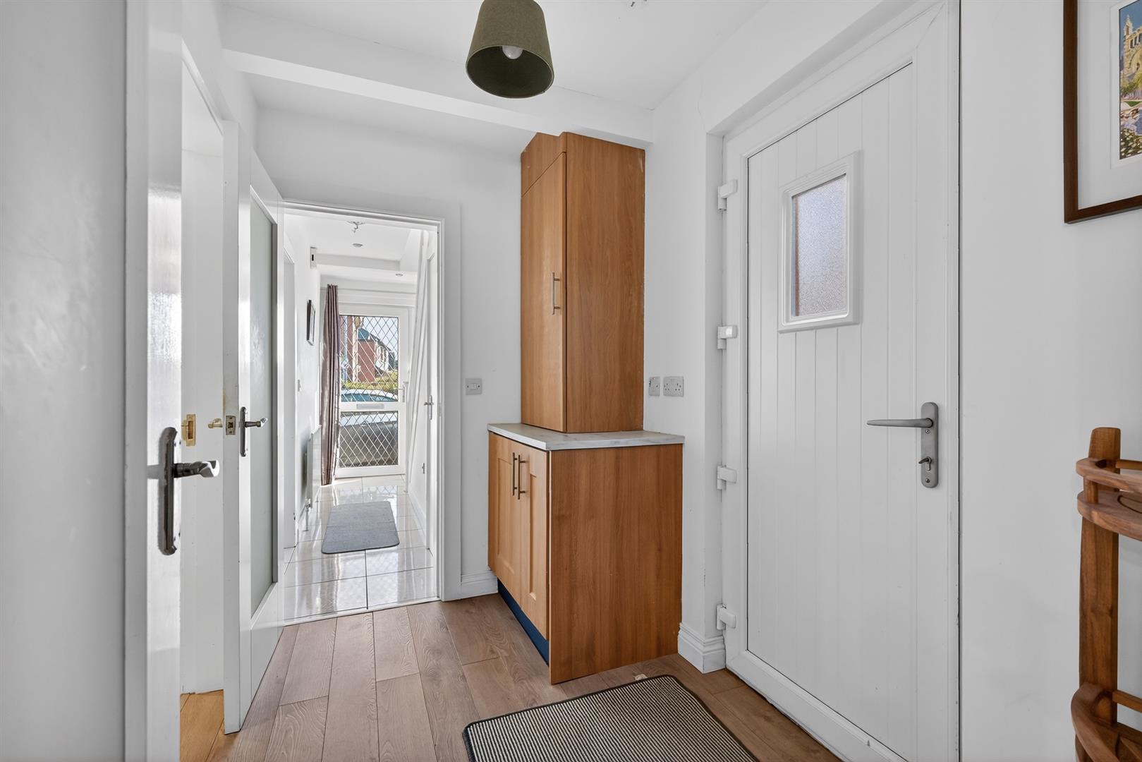 Glass panelled PVC front door.