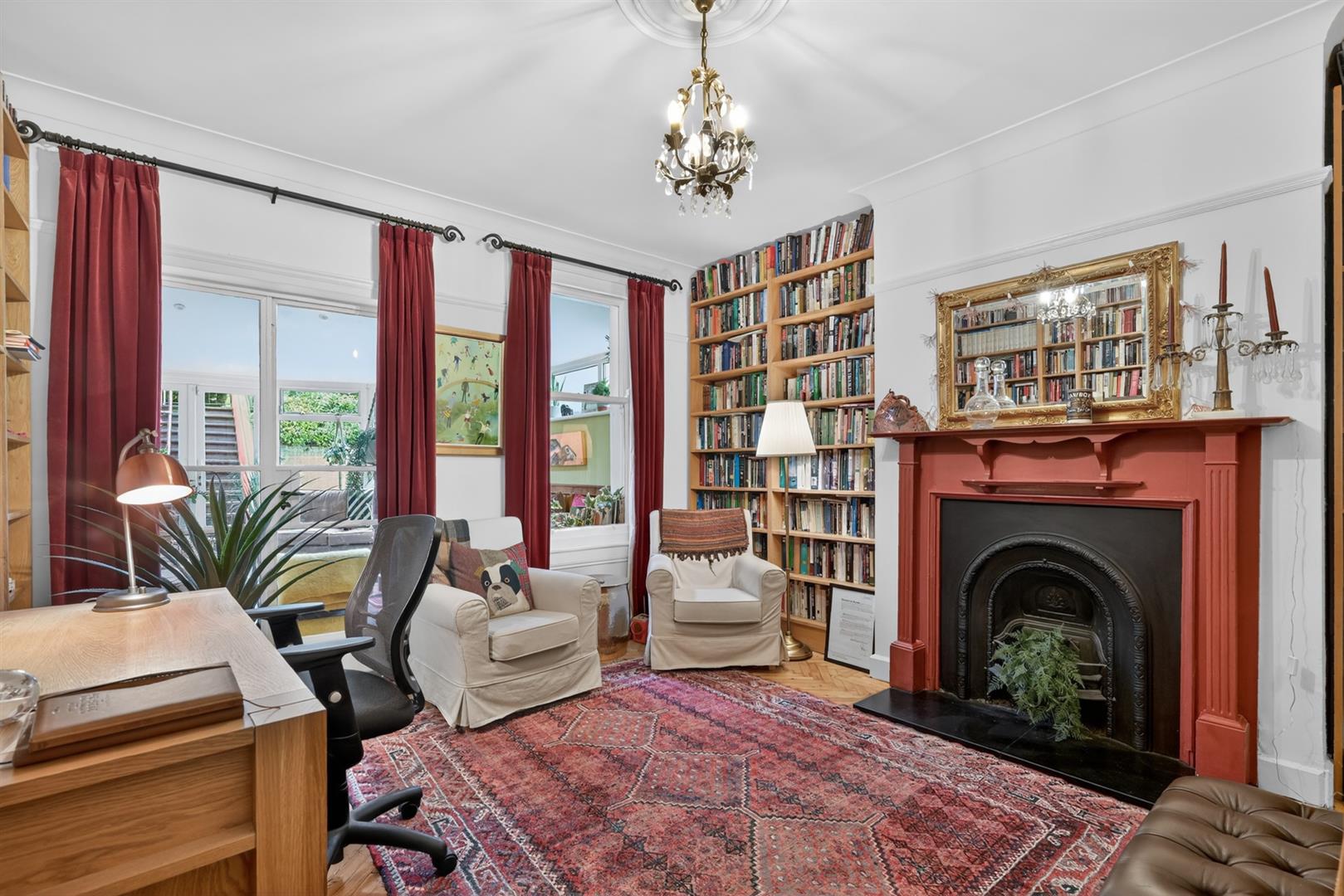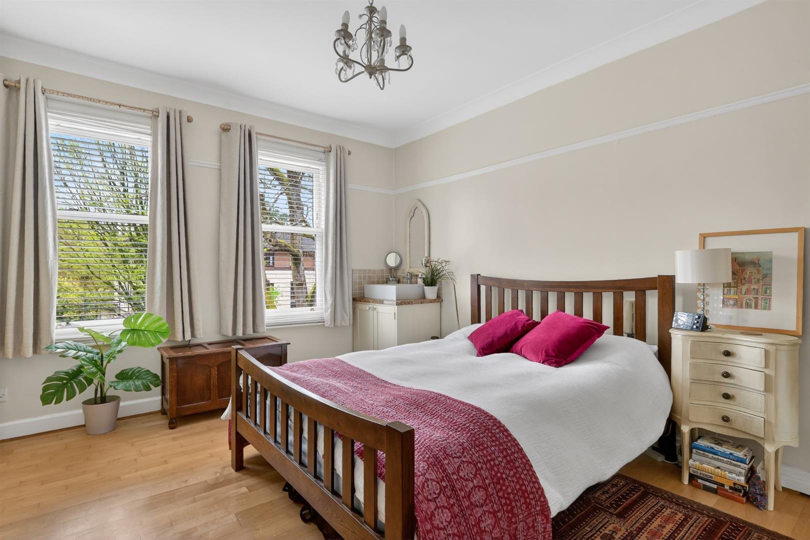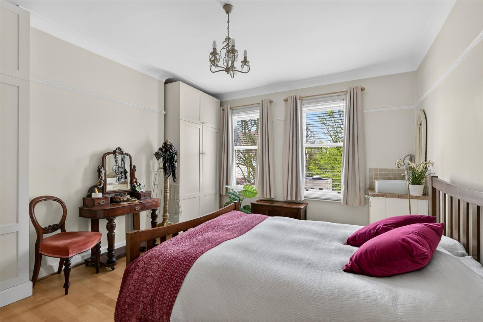 Built in robes, solid wood flooring, fireplace. Picture rail, cornicing.