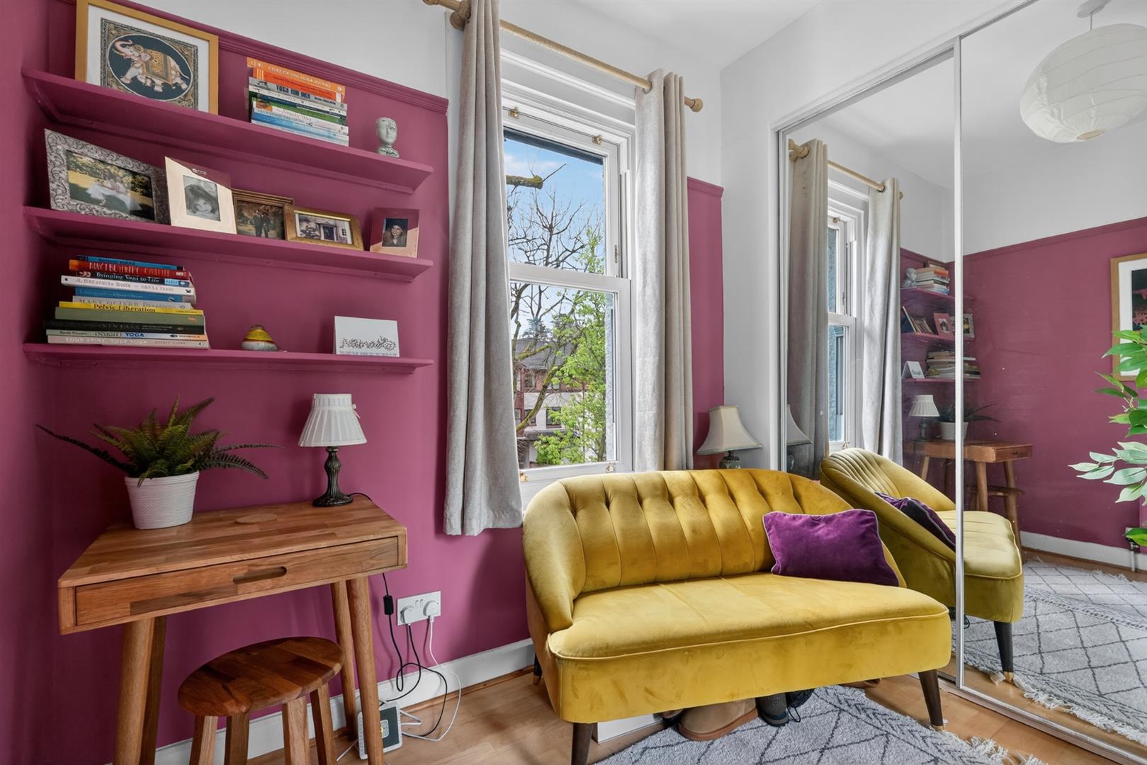 Sliding mirrored built in robes, solid wood flooring.
