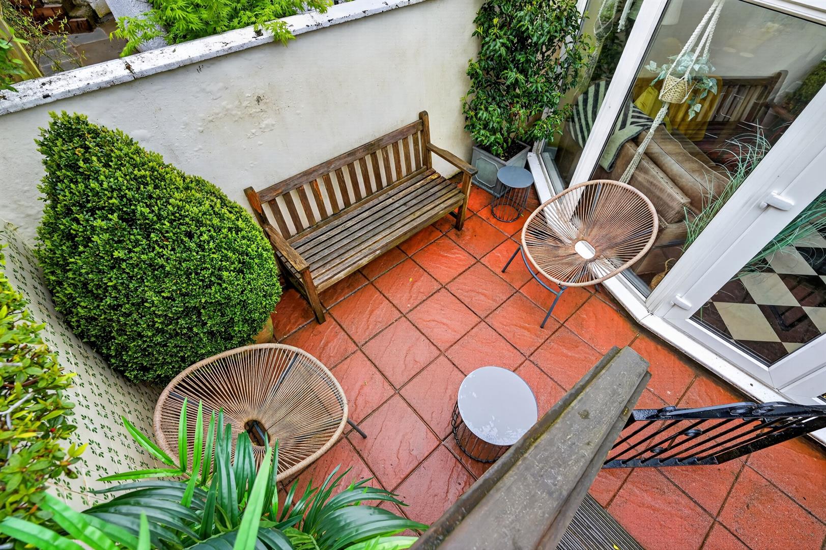 Enclosed rear garden in lawn, paved patio. Off street parking to rear.