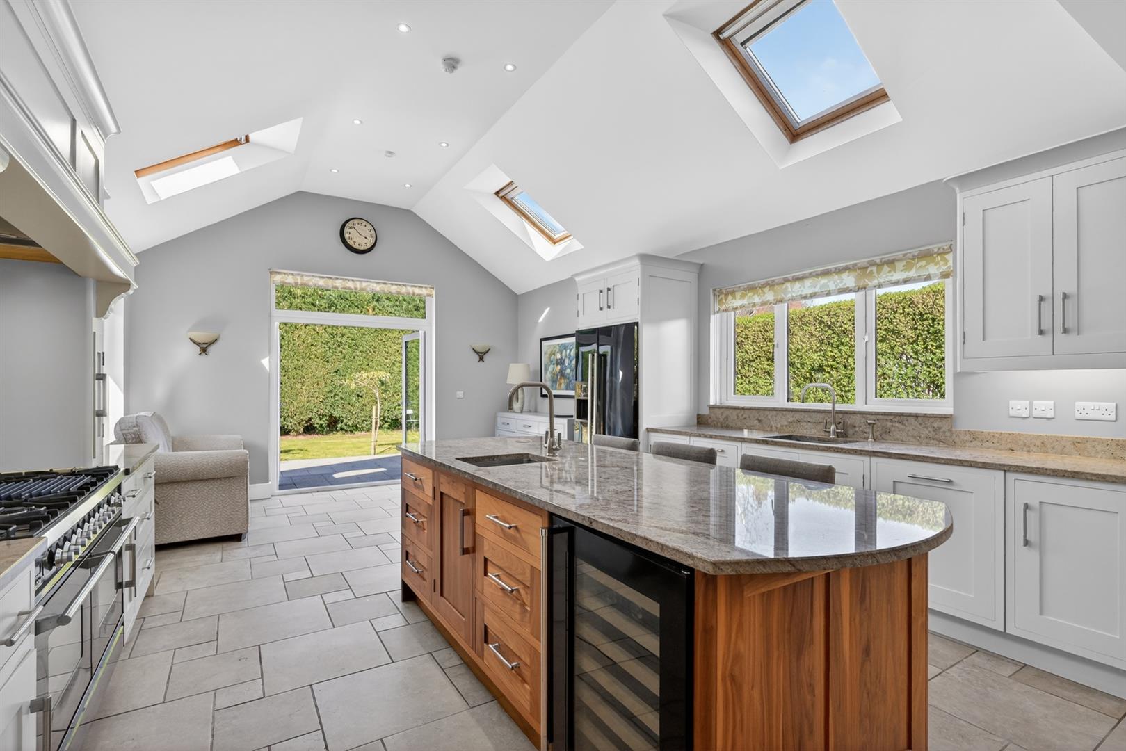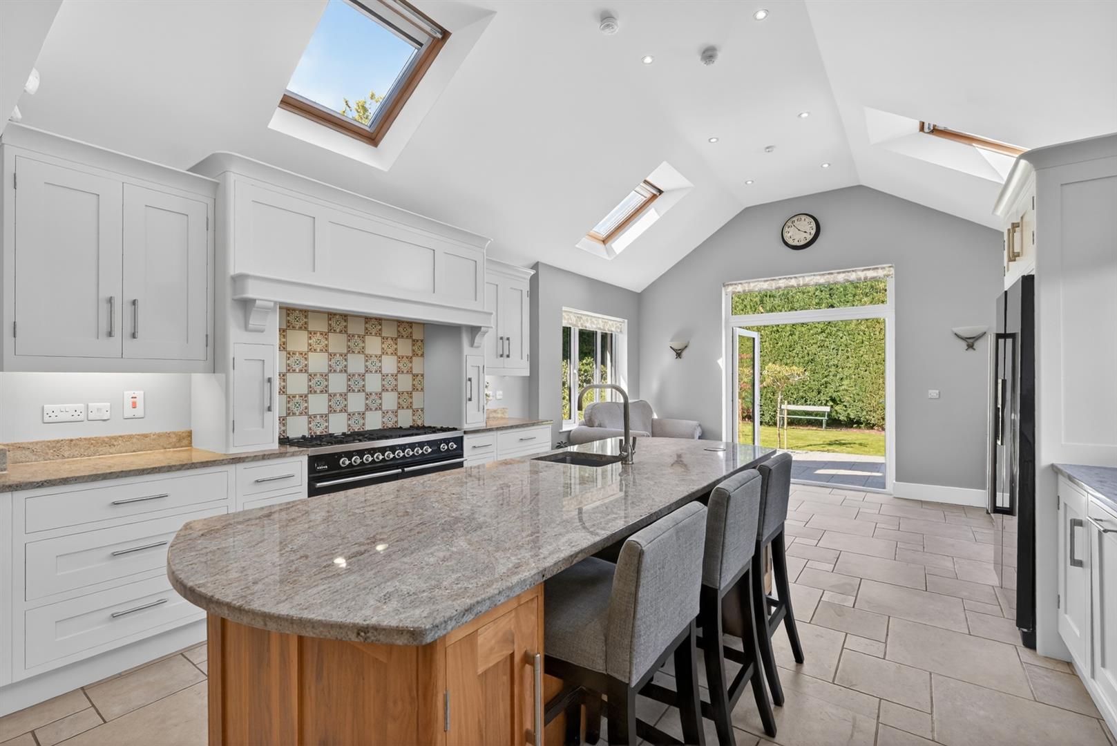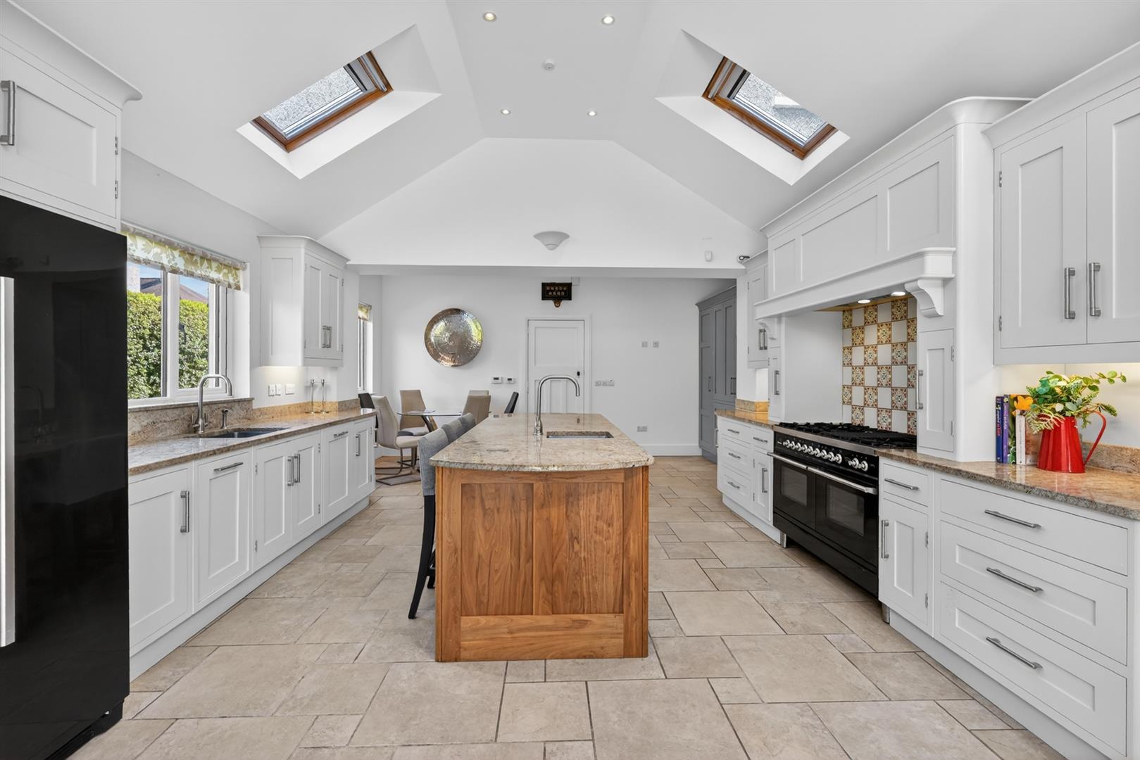Extensive range of high and low level units, island unit, granite work surfaces, integrated dishwasher, tiled flooring, recessed spotlighting, Velux windows, double doors to rear garden.