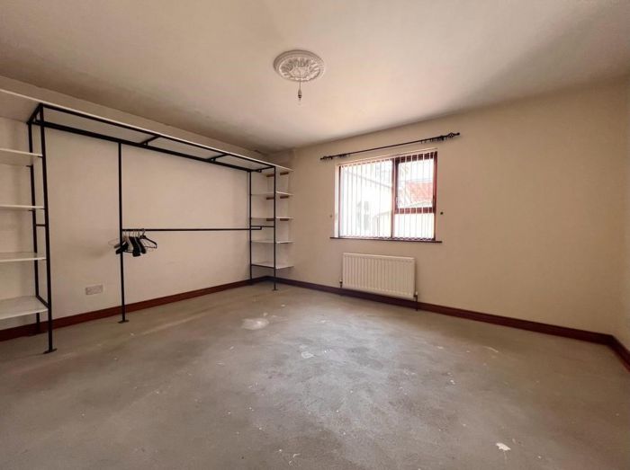 With part tiled & part wooden floor, storage cupboard, hot Press.