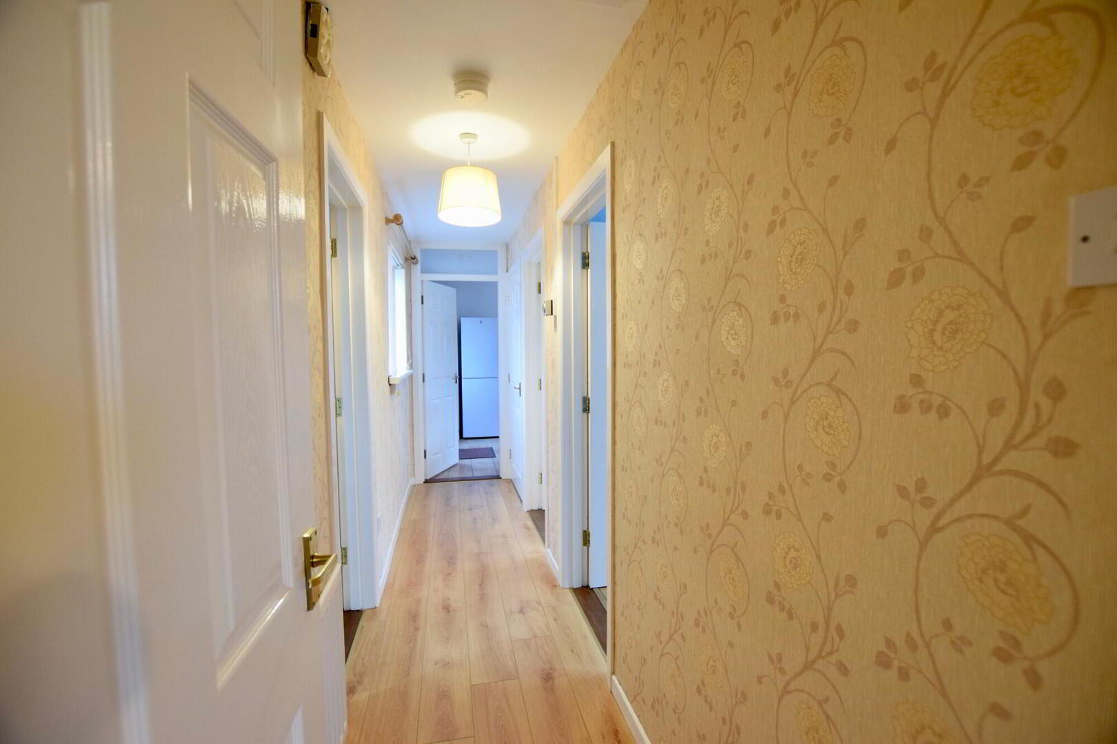 Entrance to living room; Three bedrooms; Shower room; Kitchen