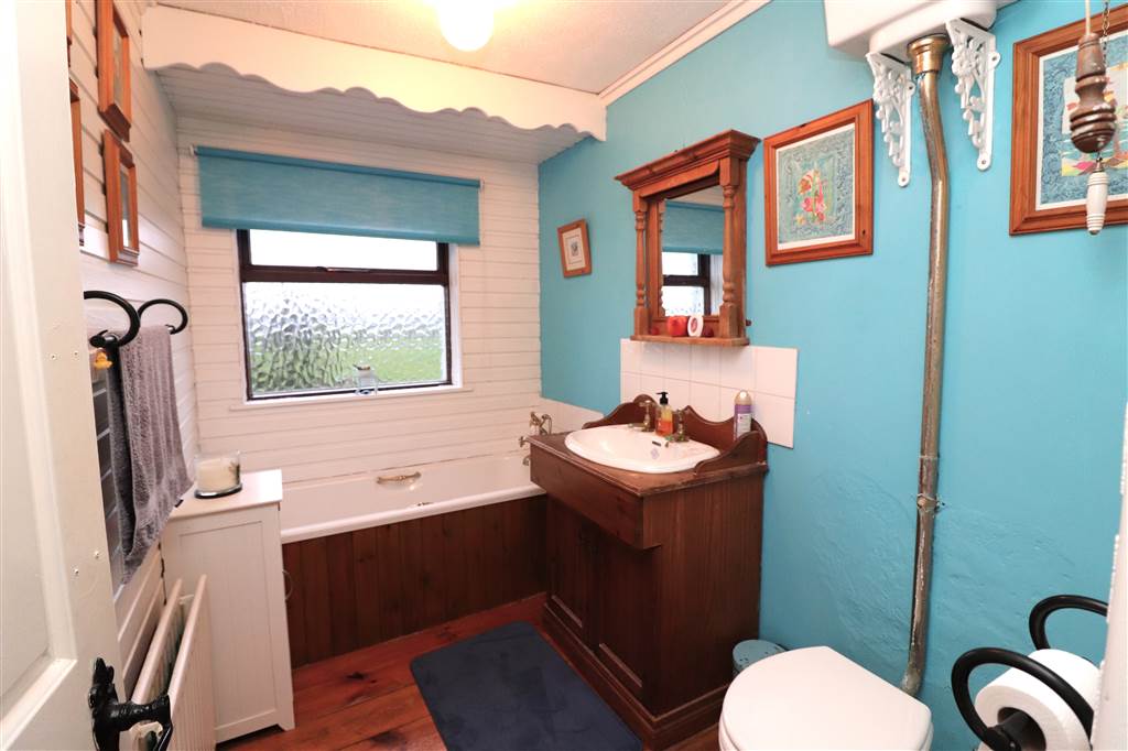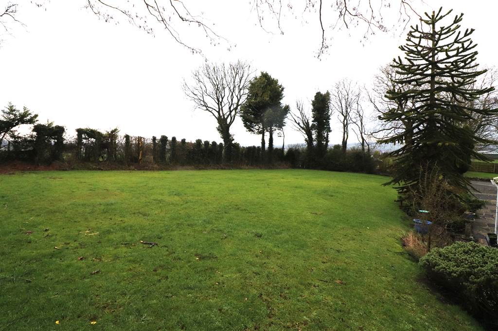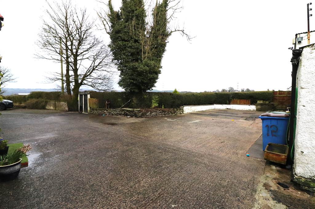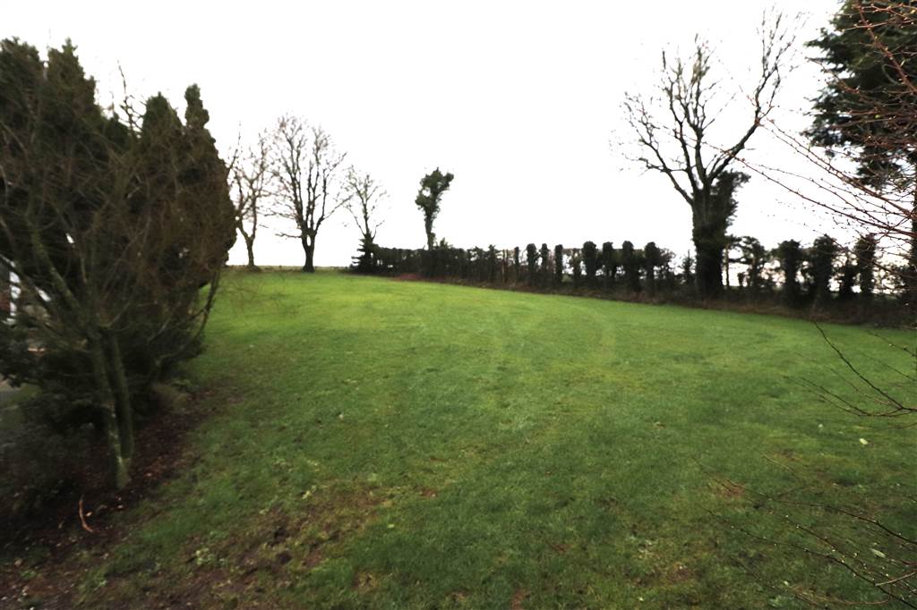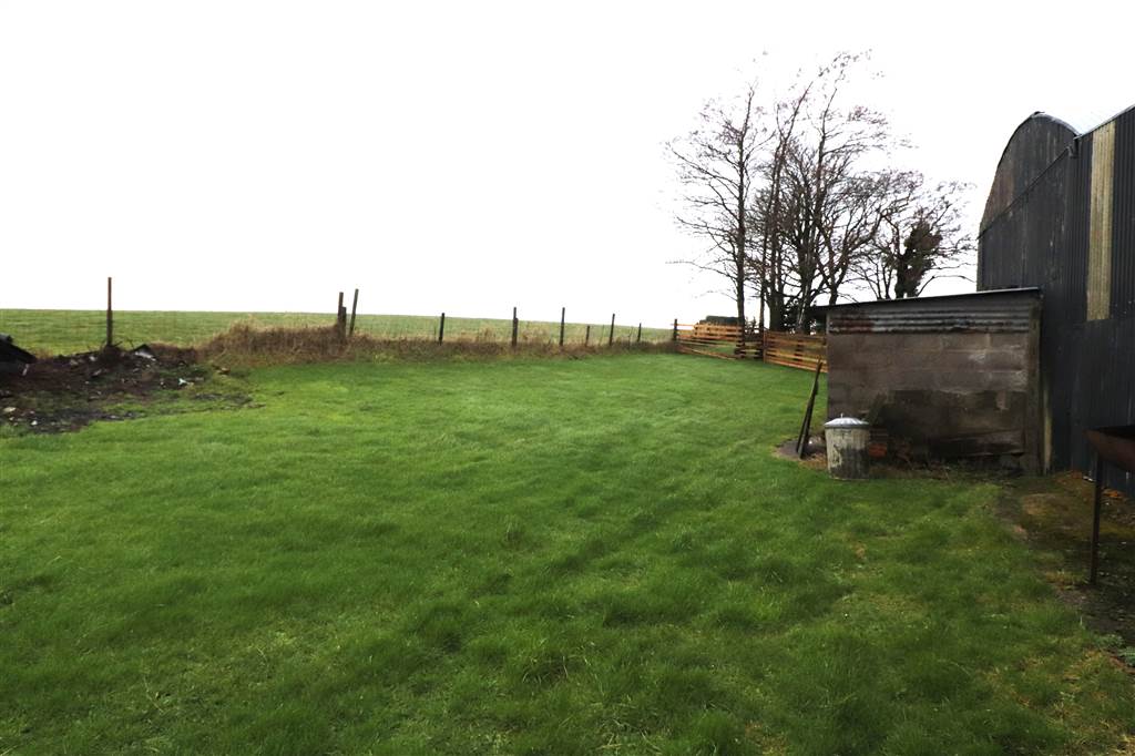 Concrete yard. Front and side gardens in lawn with mature flowers, shrubs and trees. Rear paddock with concrete store. Outside light and tap. Paved patio areas. Coal house. Oil tank.