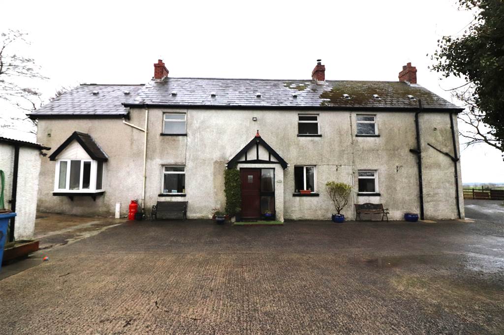 The farmhouse is approached by a sweeping driveway and enjoys large mature gardens, an excellent concrete yard, range of outbuildings and stables.