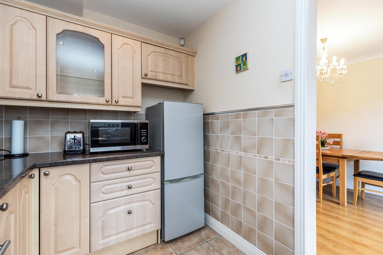 Range of high and low level units, marble effect work surfaces, inset single drainer stainless sink unit with mixer tap, built-in under oven with ceramic hob, integrated extractor hood, plumbing for washing machine, space for fridge freezer, part tiled walls, ceramic tiled flooring, recessed spotlighting.
