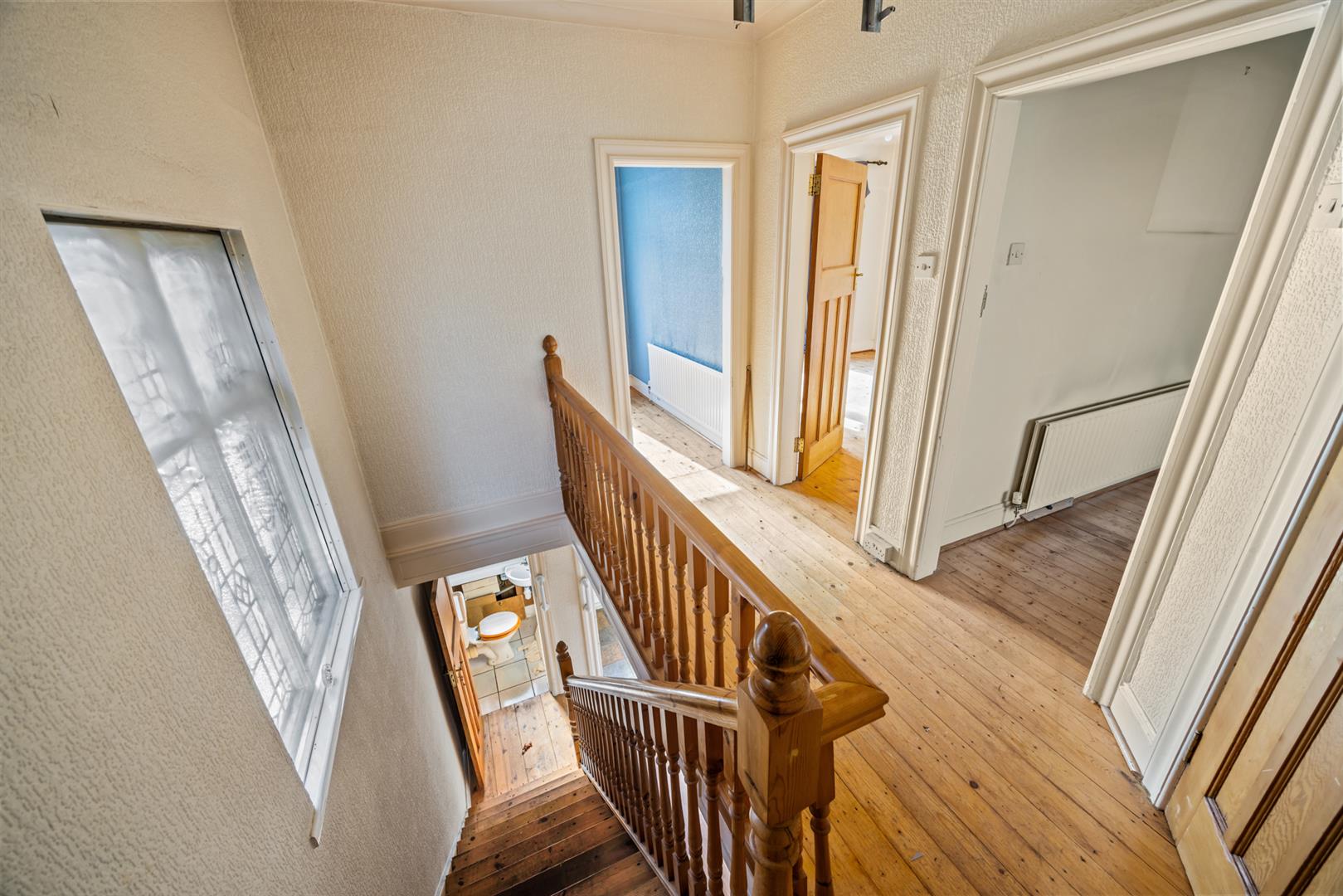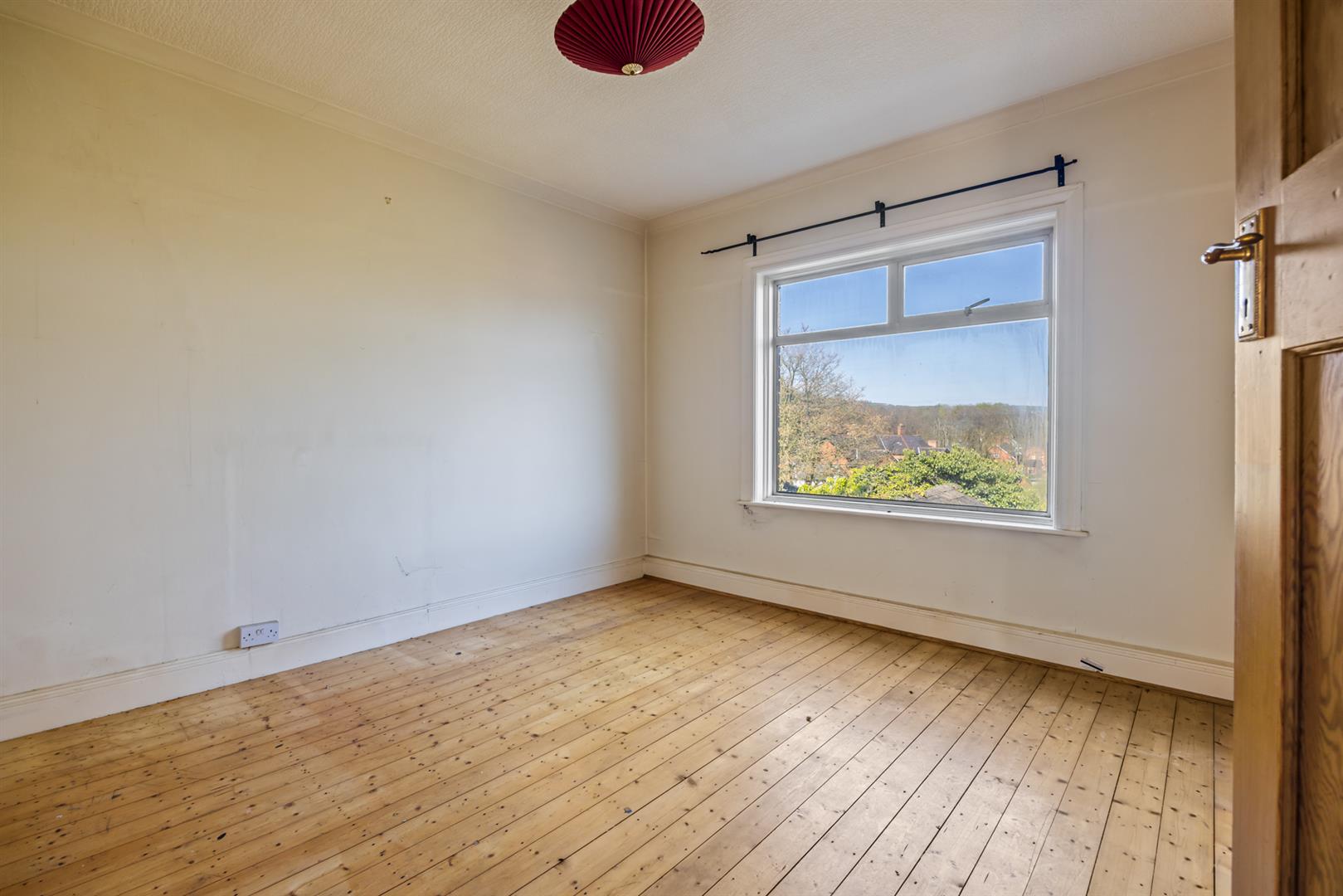 Upstairs, the first floor landing leads to three well-proportioned bedrooms, all finished with attractive sanded and varnished strip wood flooring, including a spacious principal bedroom with bay window. The bathroom is fitted with a white suite comprising panelled bath with electric shower over, pedestal wash hand basin, low flush WC, and fully tiled walls and flooring.
