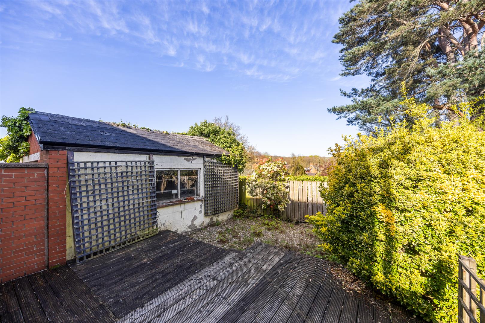 Externally, the property benefits from a front garden laid in lawn with boundary hedging and a driveway to the side leading to a detached garage. The enclosed rear garden is paved and decked, providing a private outdoor space ideal for relaxing or entertaining.