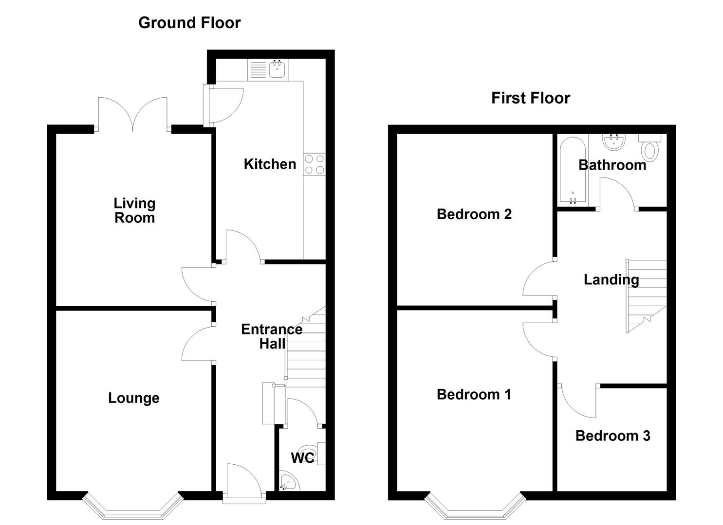 The accommodation comprises an entrance porch with PVC front door and tiled flooring, leading into the entrance hall with laminate wooden flooring, under-stair storage and a convenient cloakroom with low flush WC and wash hand basin. The lounge features a charming bay window and a fireplace with cast iron inset and tiled hearth, while a separate living room offers sanded and varnished strip wood flooring and PVC doors opening to the rear garden. The kitchen is fitted with a range of high and low level units, a stainless steel sink, oven with four ring gas hob, and is plumbed for a washing machine, with part tiled walls and a fully tiled floor.