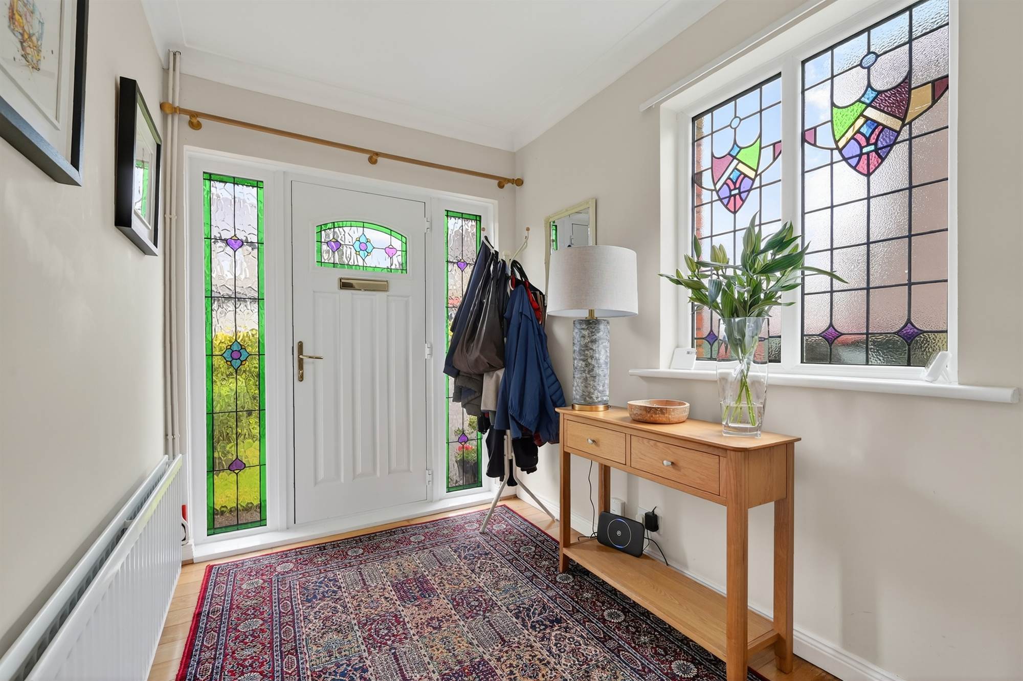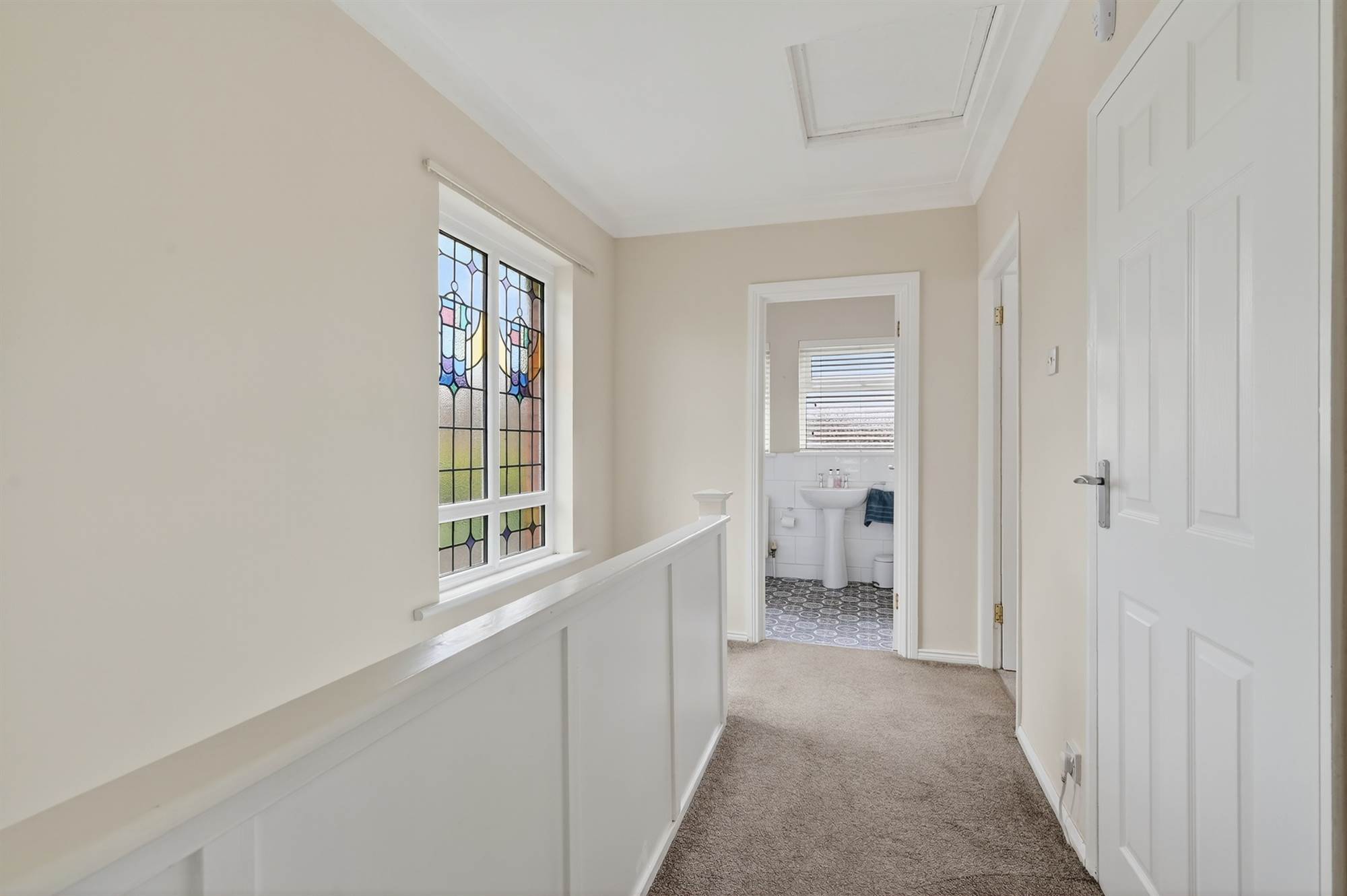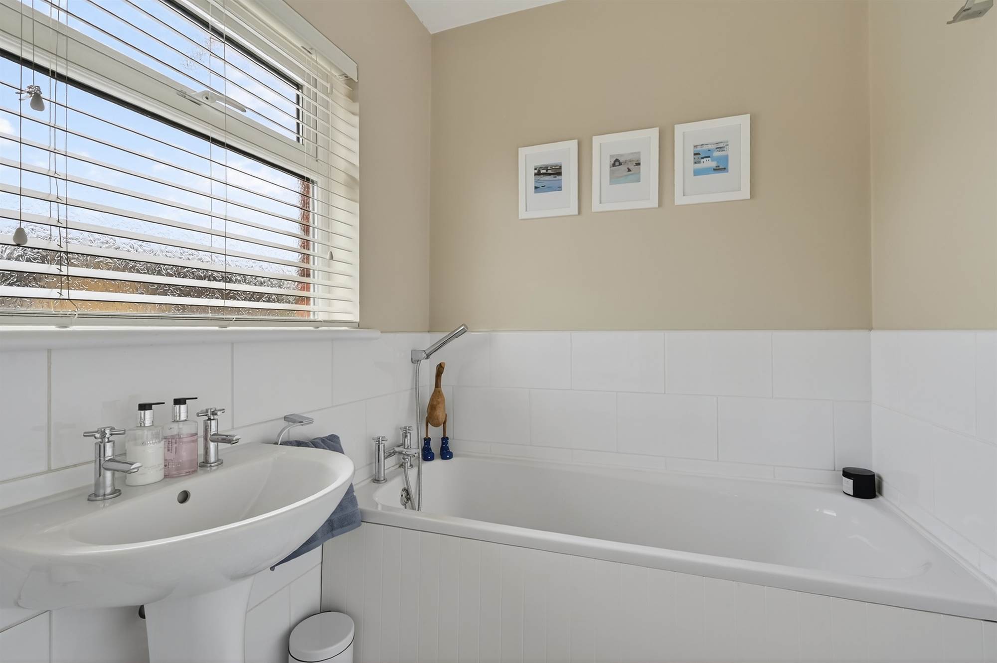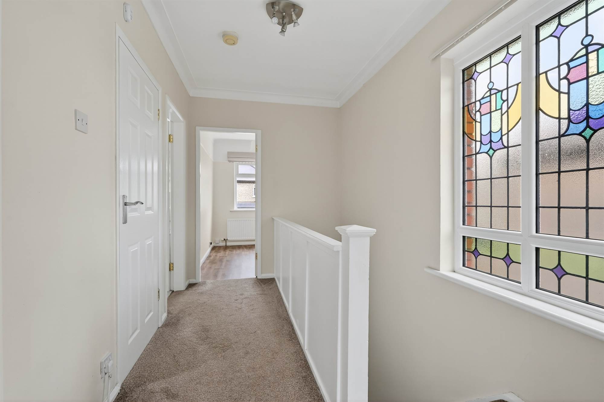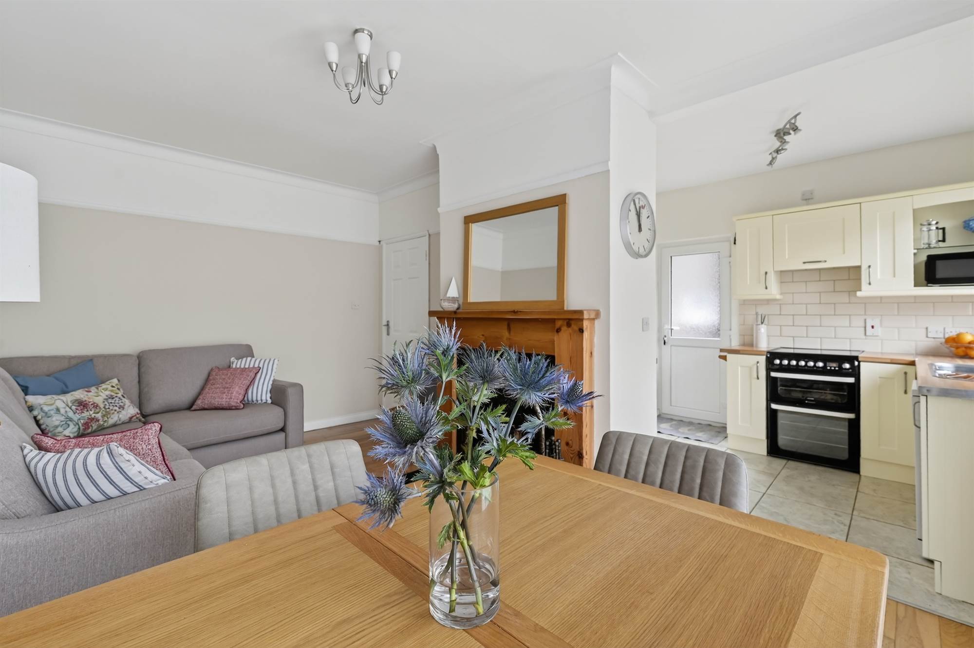 To the first floor there are three well-proportioned bedrooms along with a modern family bathroom. Externally there is ample driveway parking leading to garage, and a delightful south facing rear garden in lawn.