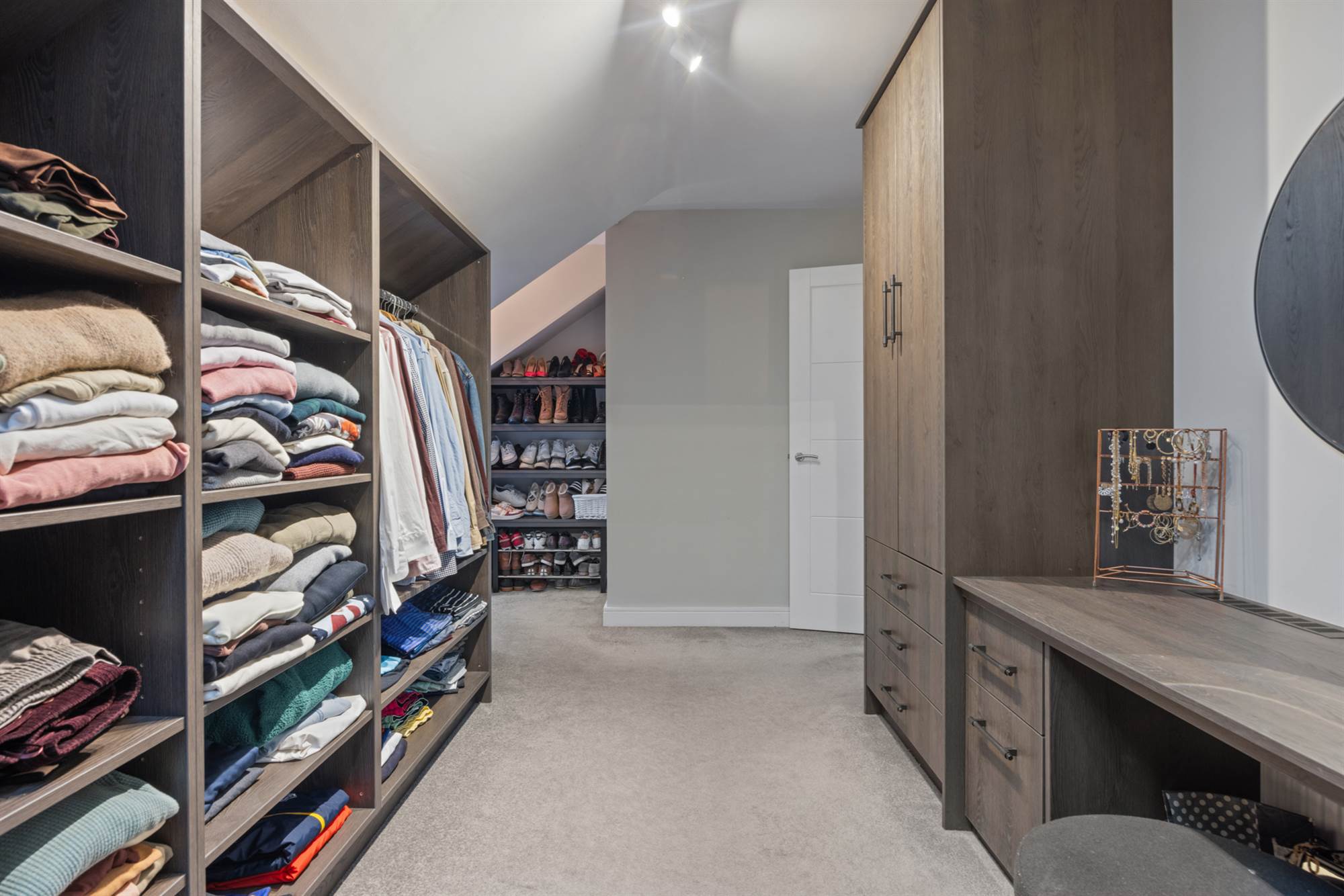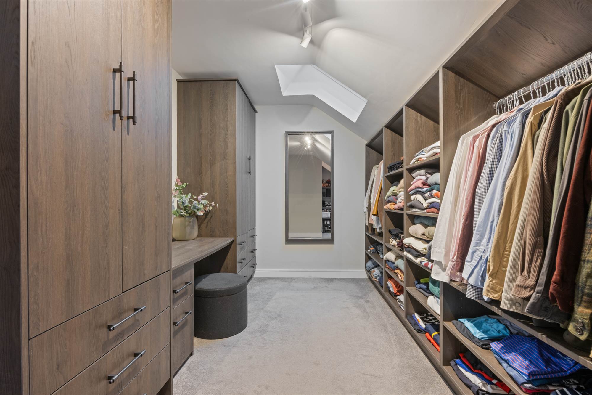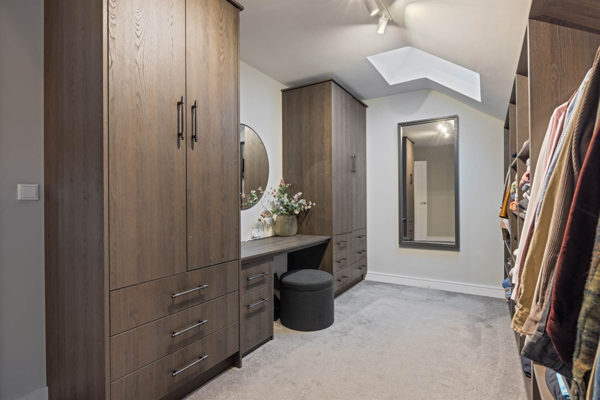 The lounge boasts a stunning feature gas fireplace, with bright and airy open plan kitchen/living/dining area boasting an impressive centre island and separate utility room. There are five double bedrooms, one of which has been converted into a fully fitted dressing room.