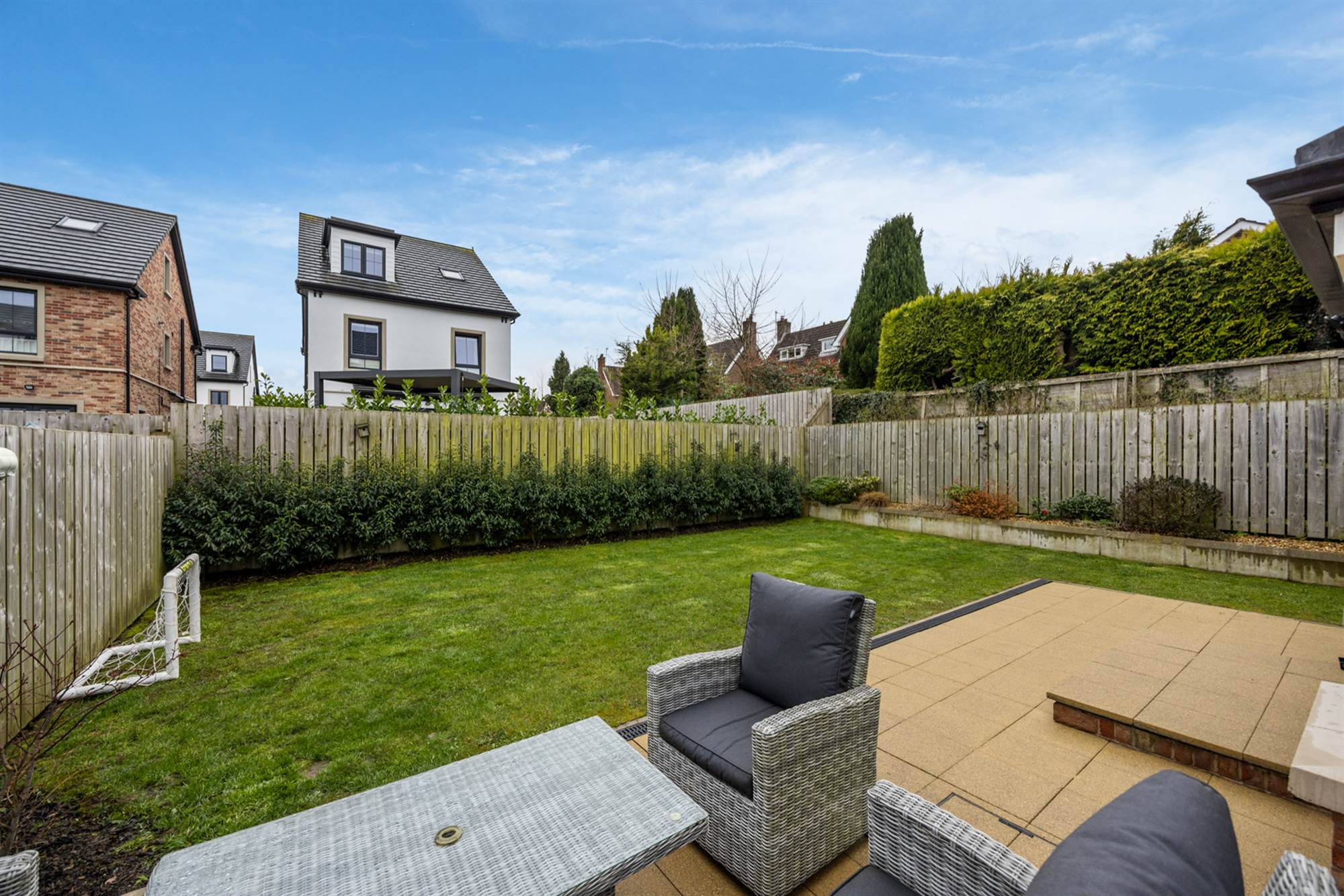 Private and enclosed South facing rear garden in lawn with patio seating area