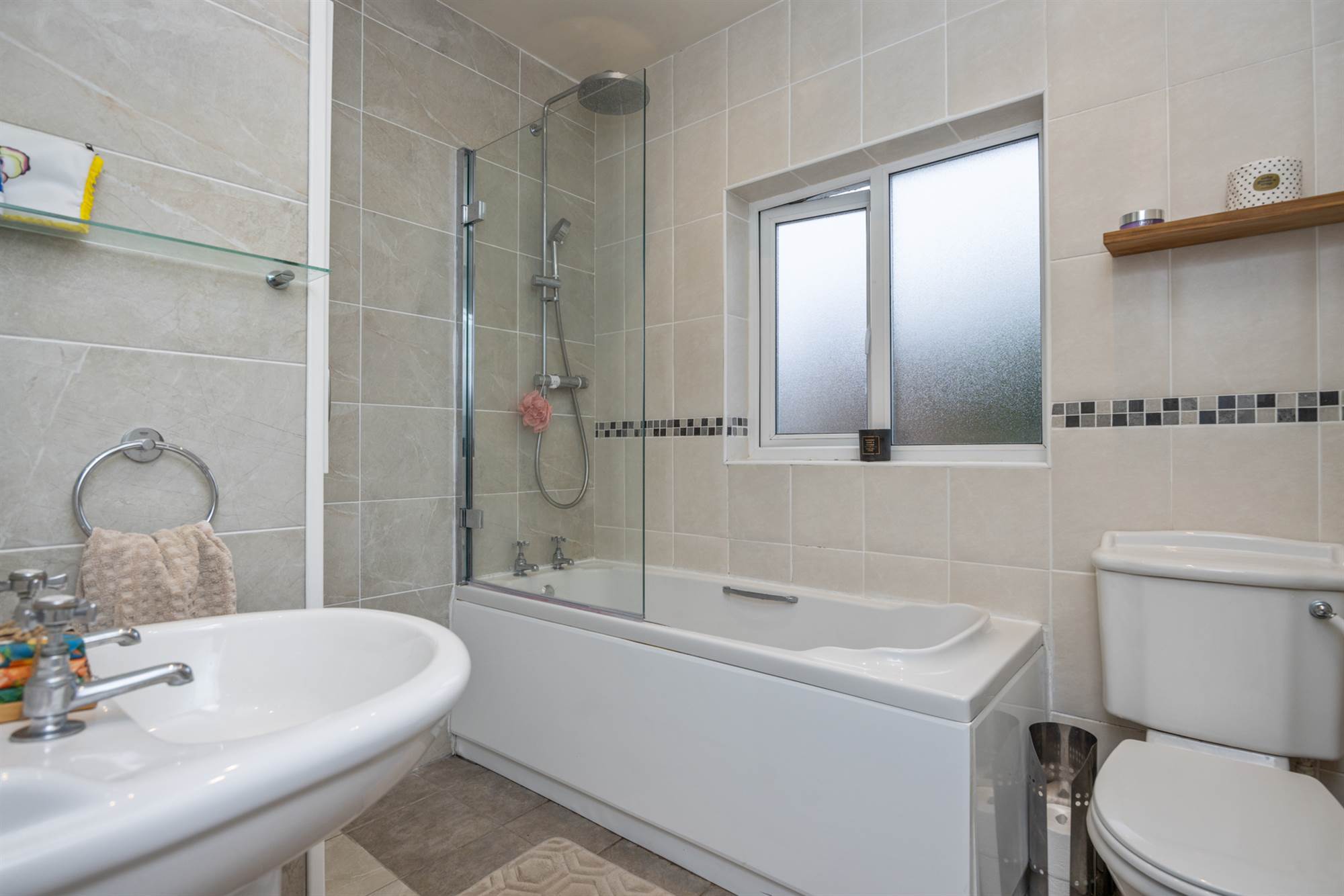 On the first floor, there are three bedrooms and a contemporary white bathroom suite.