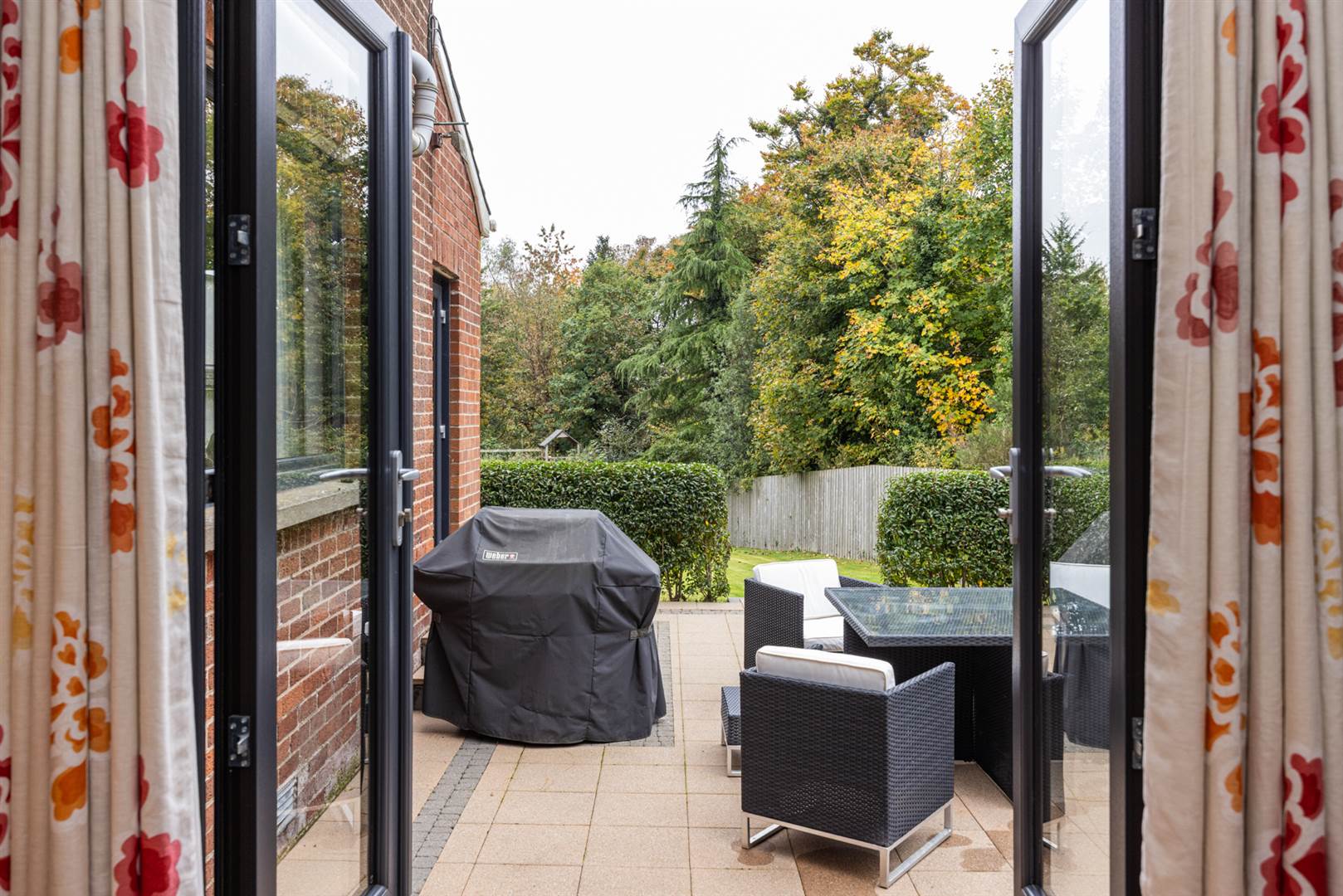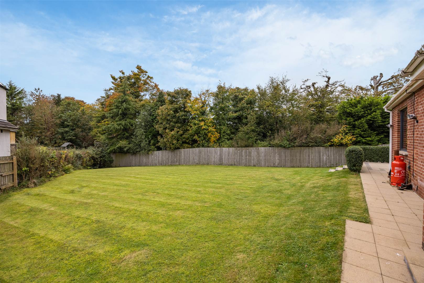 Spacious corner site incorporating lawns, mature borders and patio areas