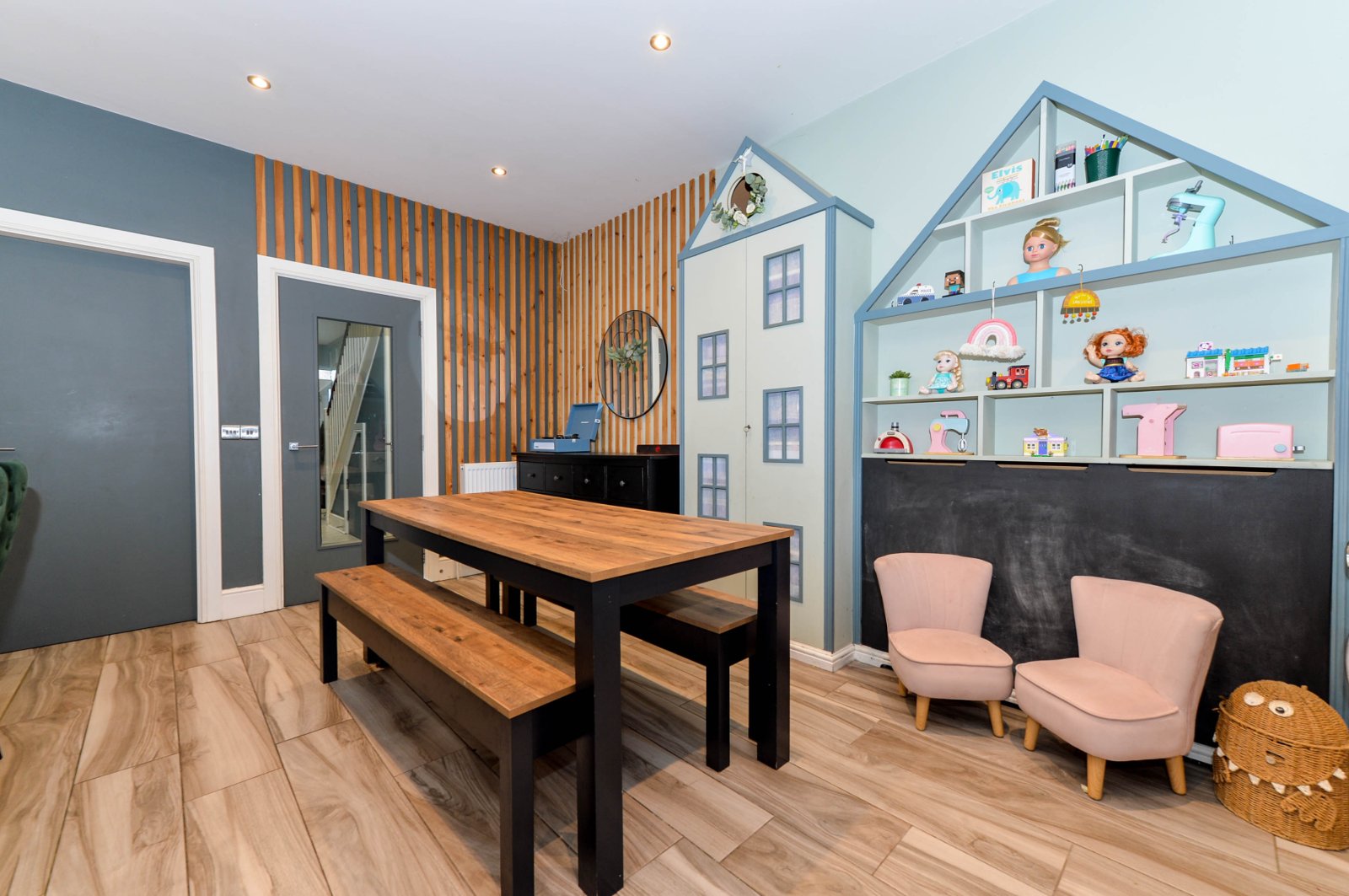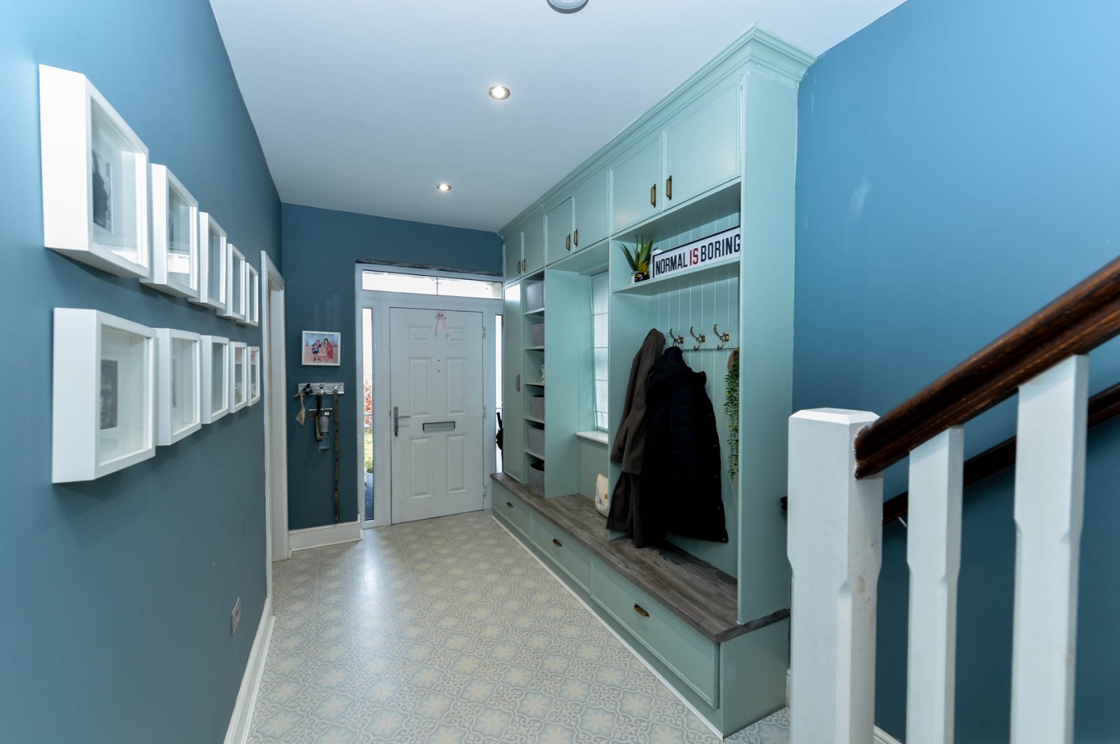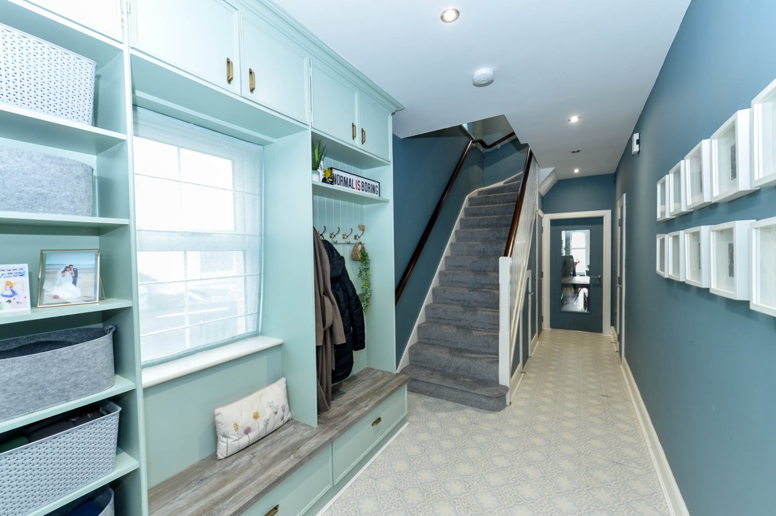 Custom made boot room area with floor to ceiling storage. Recessed spotlighting. Additional built in storage cupboard with shelving and storage. Under stairs storage.