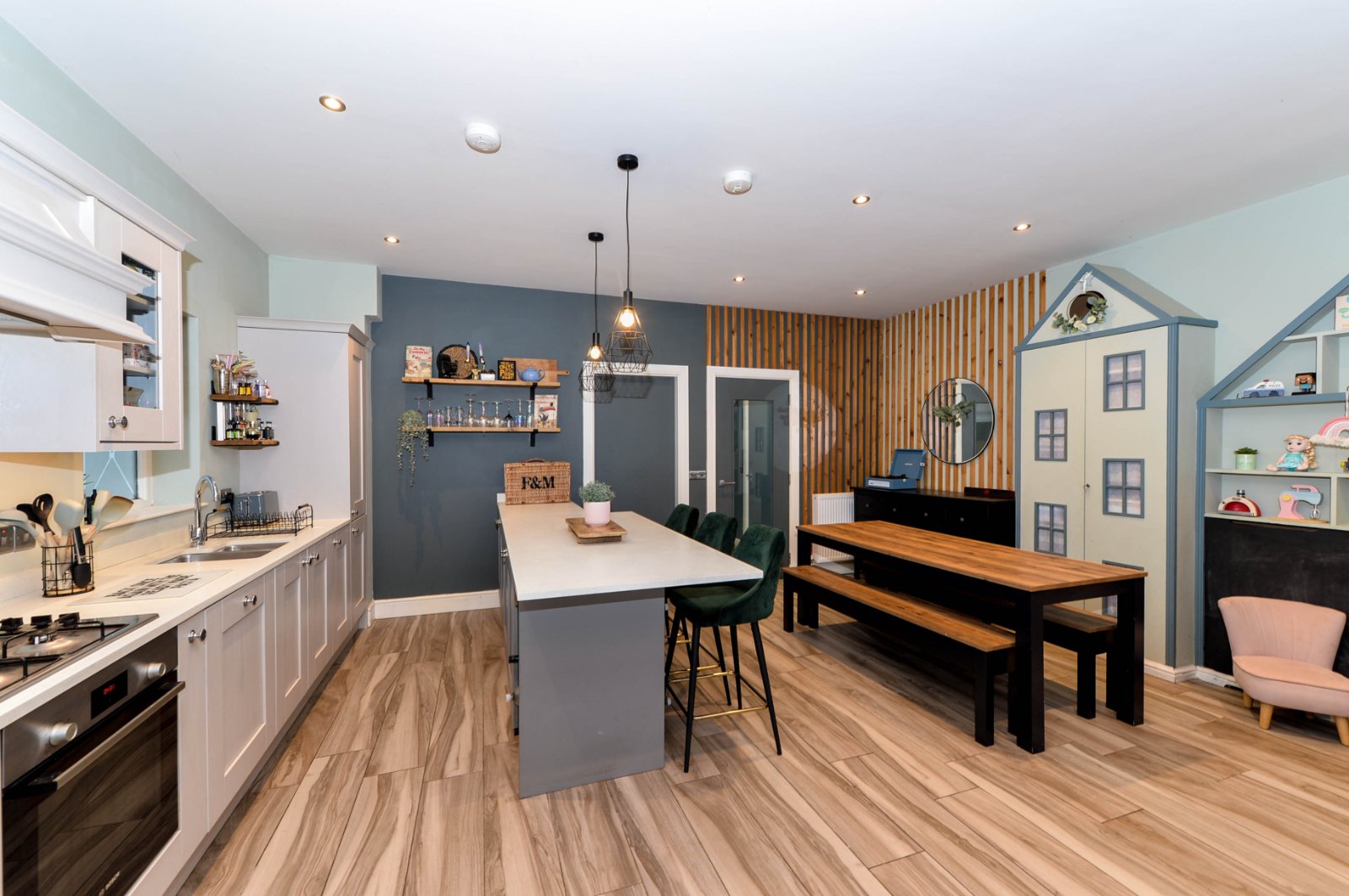 Of particular note is the bespoke fitted kitchen open plan to dining / living area with uPVC French doors to enclosed private garden area - a fantastic space to enjoy modern family living.