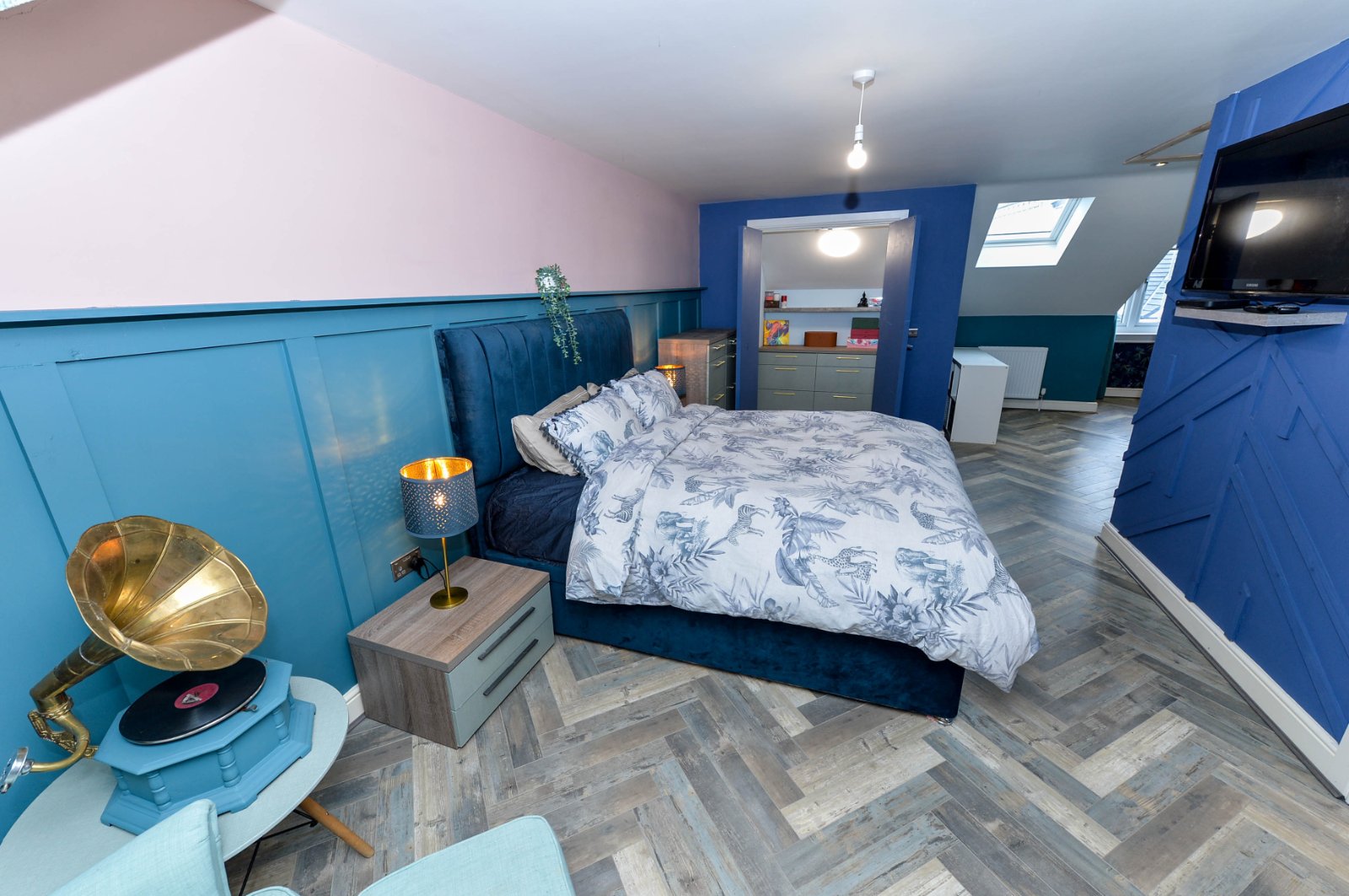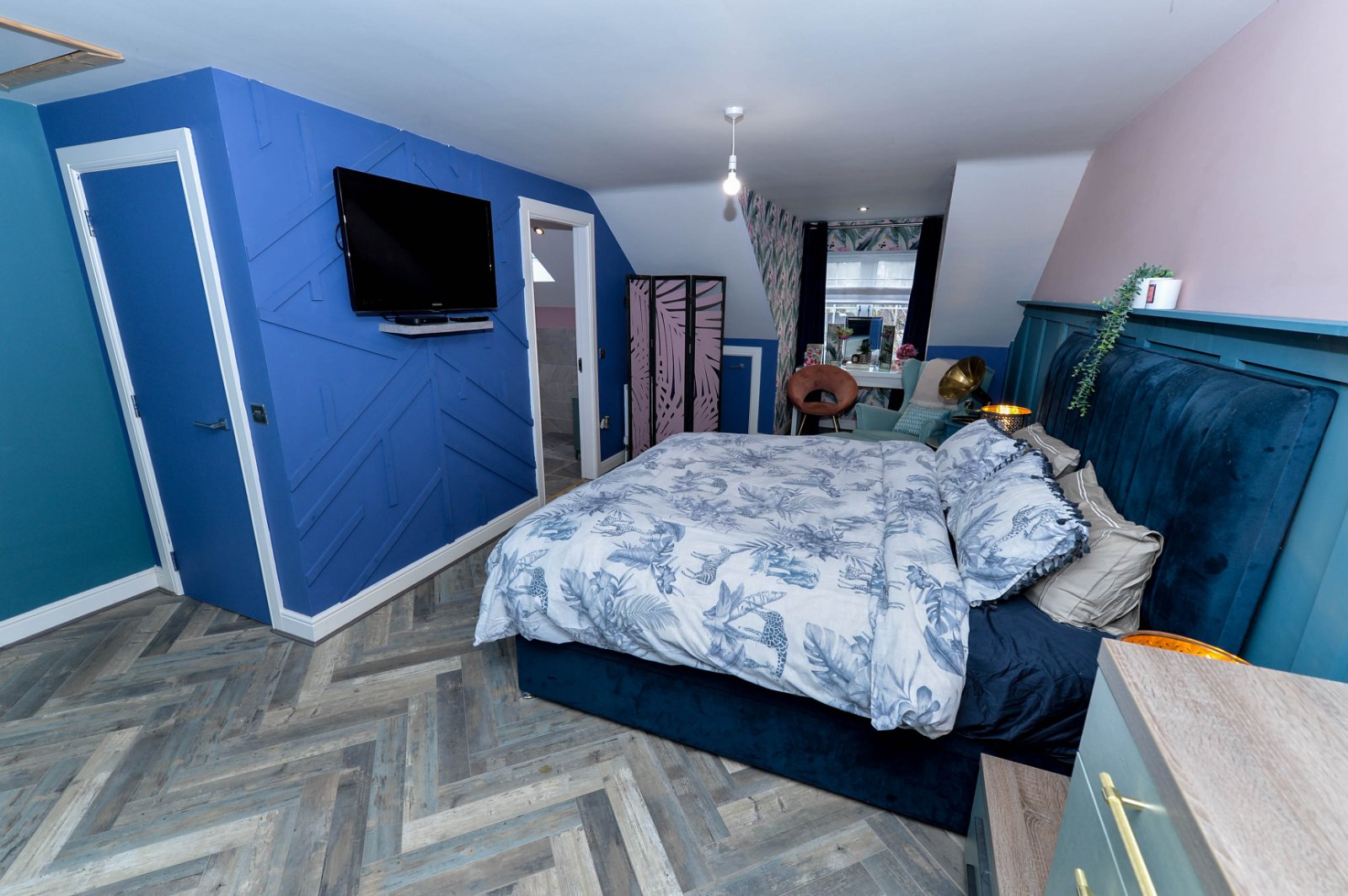 At widest points. Large built in closet dressing room with shelving. Additional storage cupboard in the eaves. Recessed spotlighting. Feature panel wall. Laminated wooden flooring. Velux window. Access to roof space via slingsby ladder - fully floored with light.