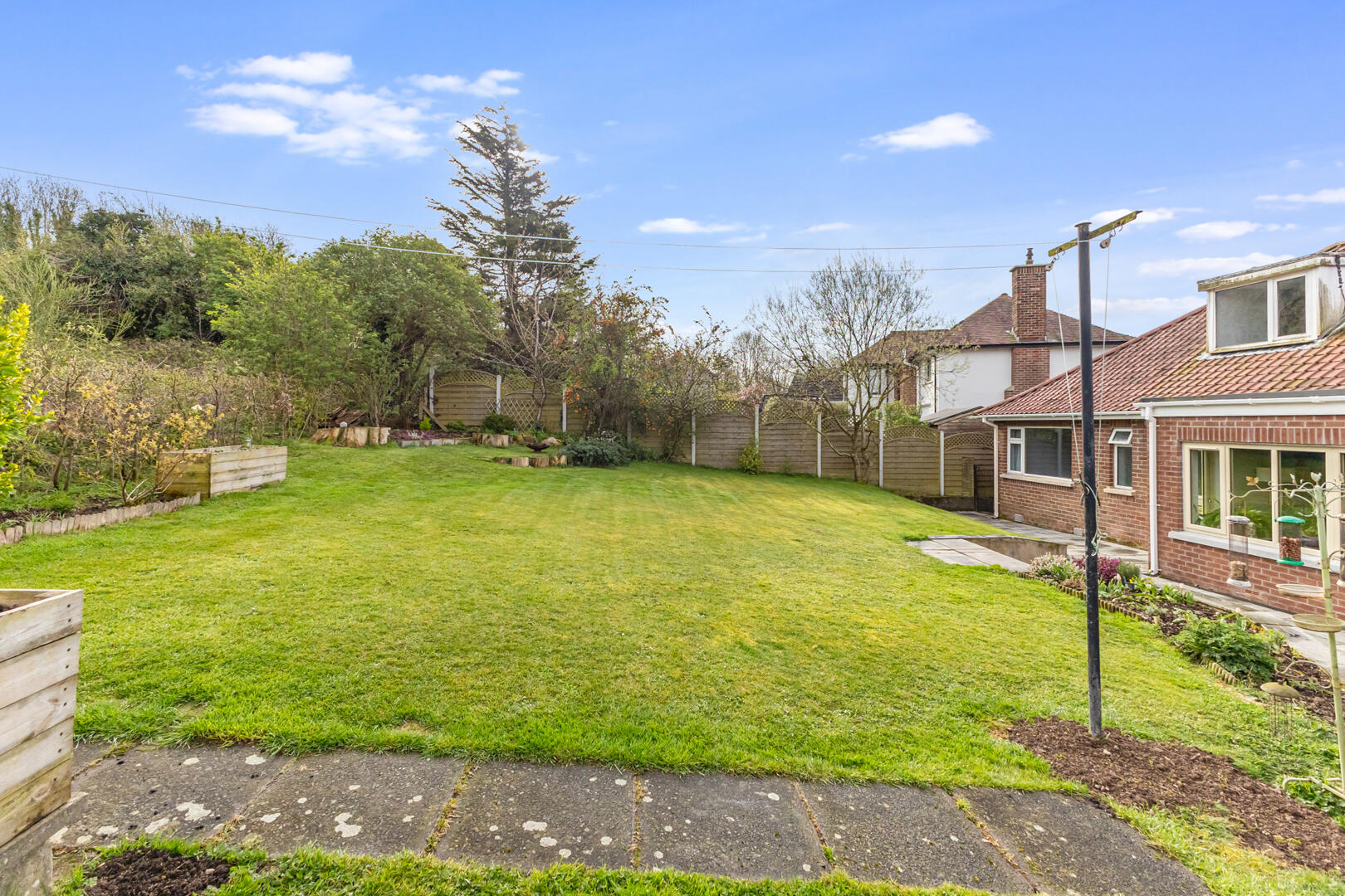 Tarmac driveway to front for off-street parking, garden to front in lawn, excellent views towards Castlereagh Hills, Black Mountain and beyond, elevated garden to rear in lawn, rear paved patio area and garden shed, patio area, shrubs, trees, fully enclosed with gated pedestrian access to side leading to front garden, outside light, housing for Worcester gas boiler, outside tap.