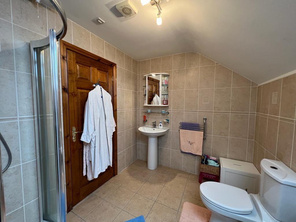 Comprising walk in shower, whb and wc, fully tiled walls and floor.