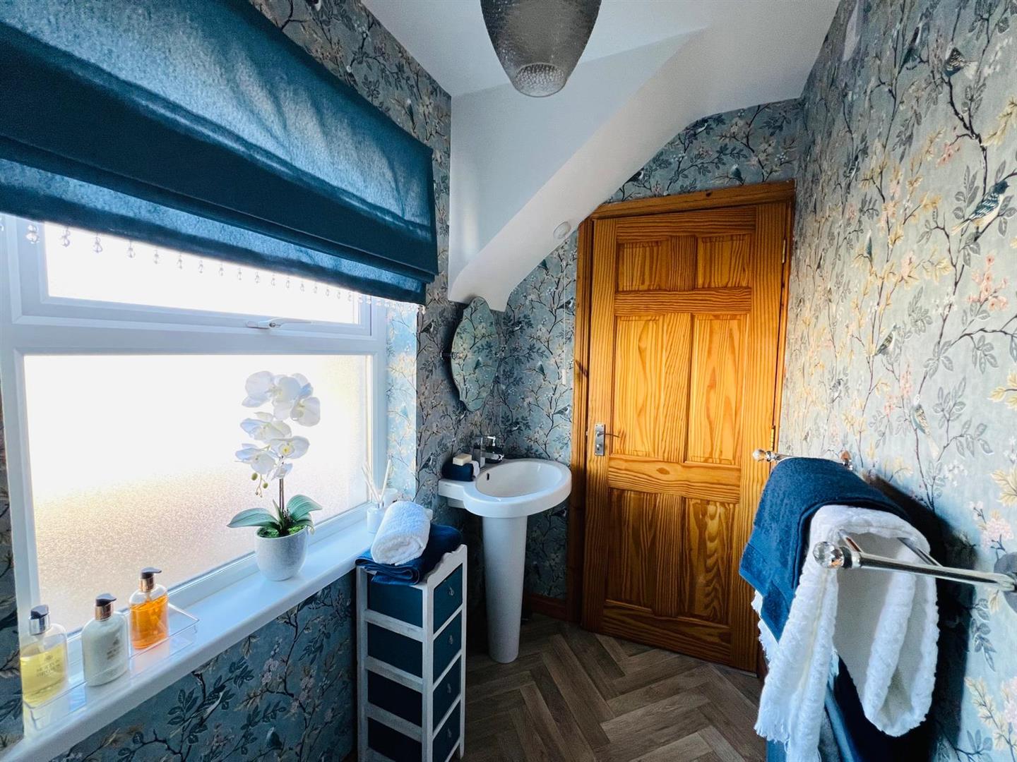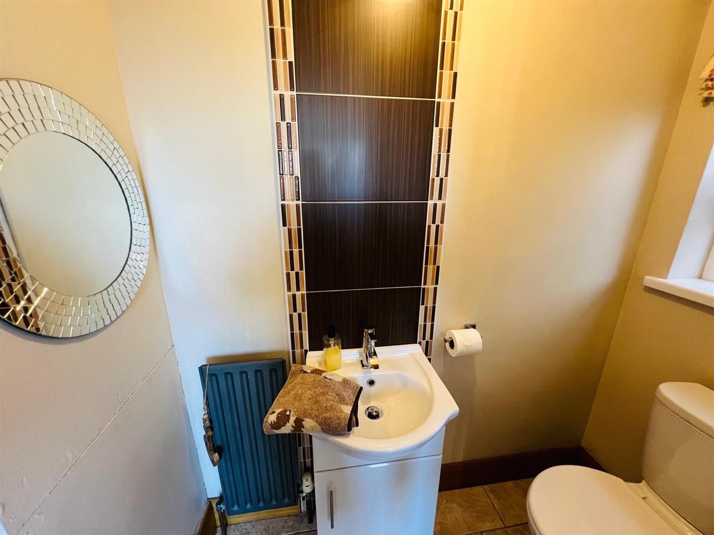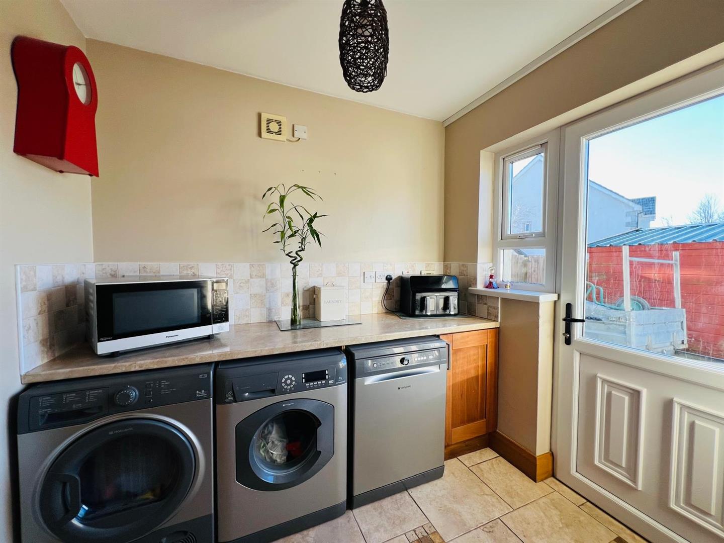 Plumbed for washing machine, space for tumble dryer, tiled floor.