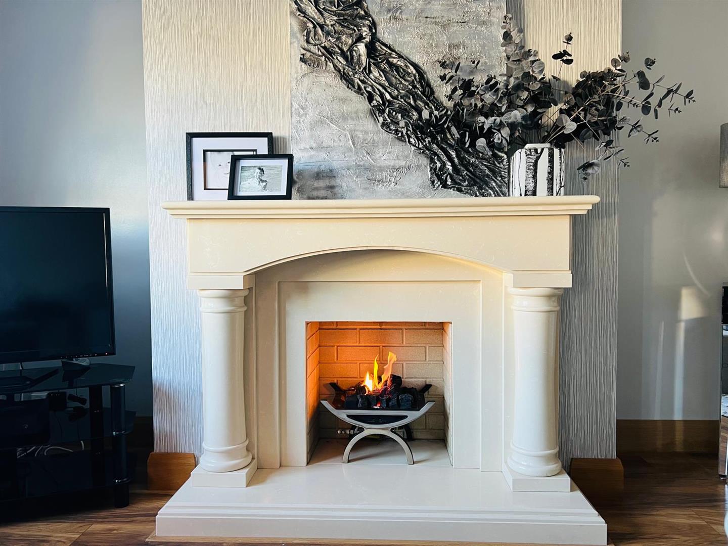 Having magnificent fireplace with gas inset and laminated wooden floor.