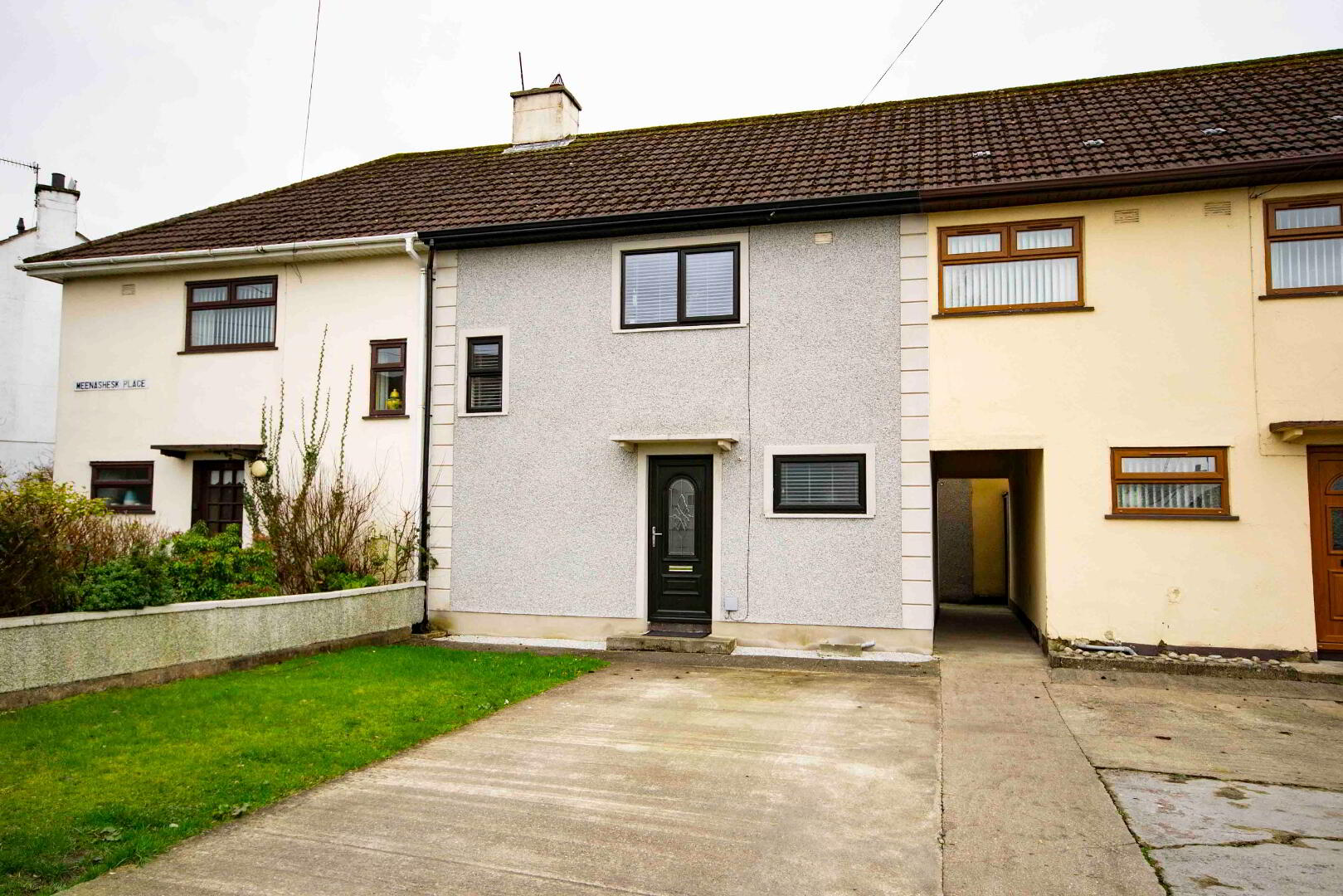 Very well presented three bedroom mid terrace house in Oweanreagh Drive, Strabane with O.F.C.H., partly furnished, driveway/parking to front and enclosed back garden with boiler house and shed