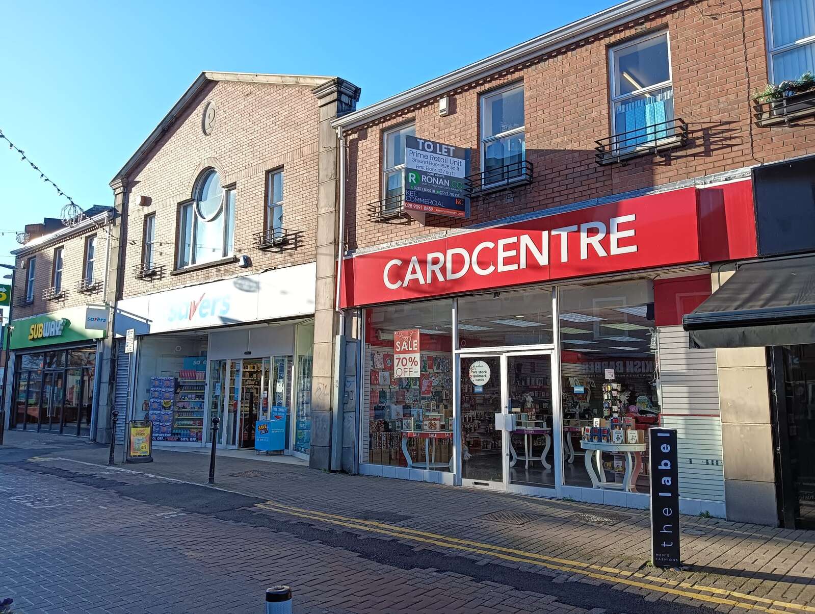 - Conveniently located between Savers and The Label, presenting high levels of footfall in the main town centre
