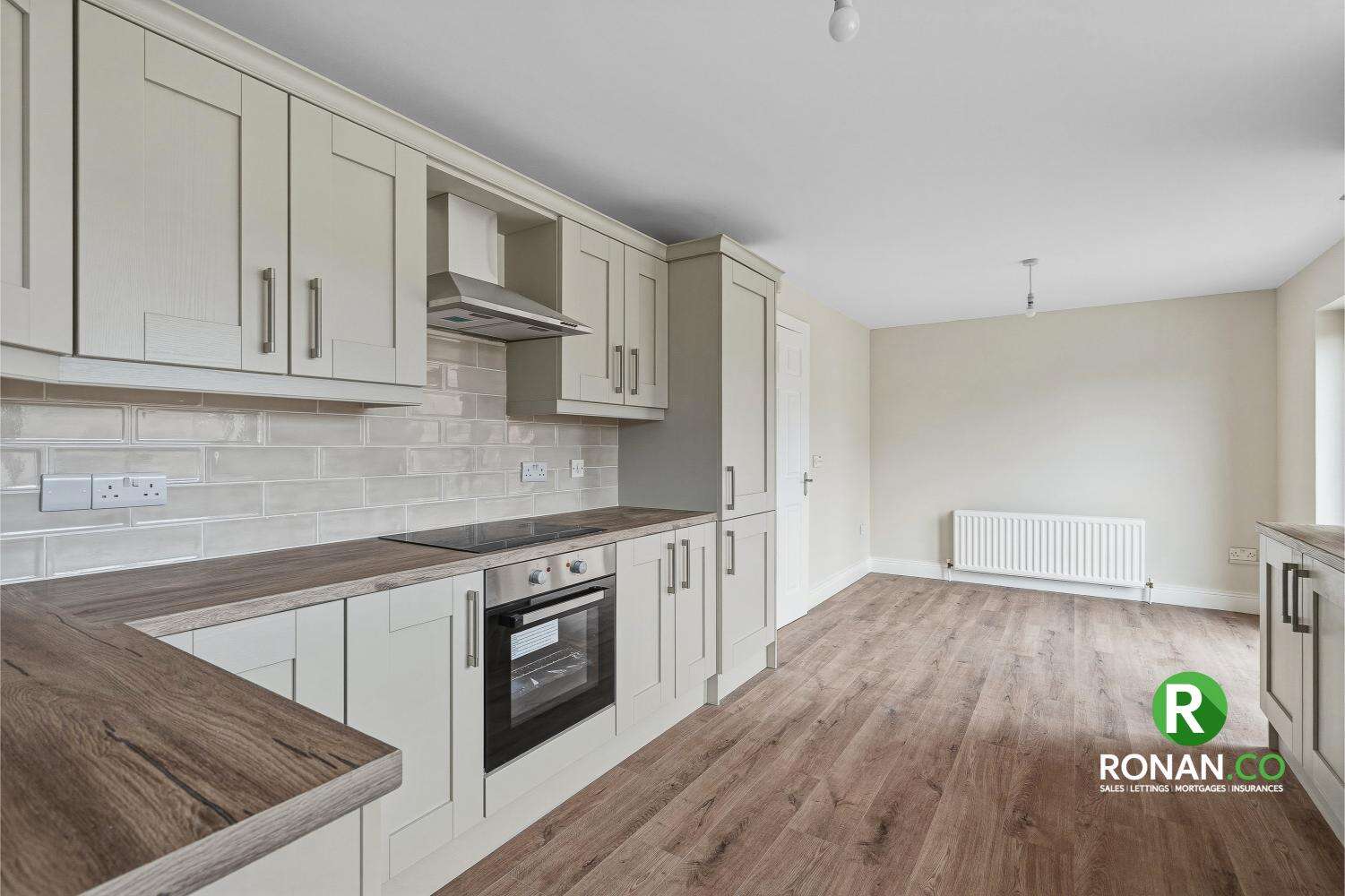 - Laminate Flooring, Electric Hob, Electric Oven, Patio Doors, Double Radiator