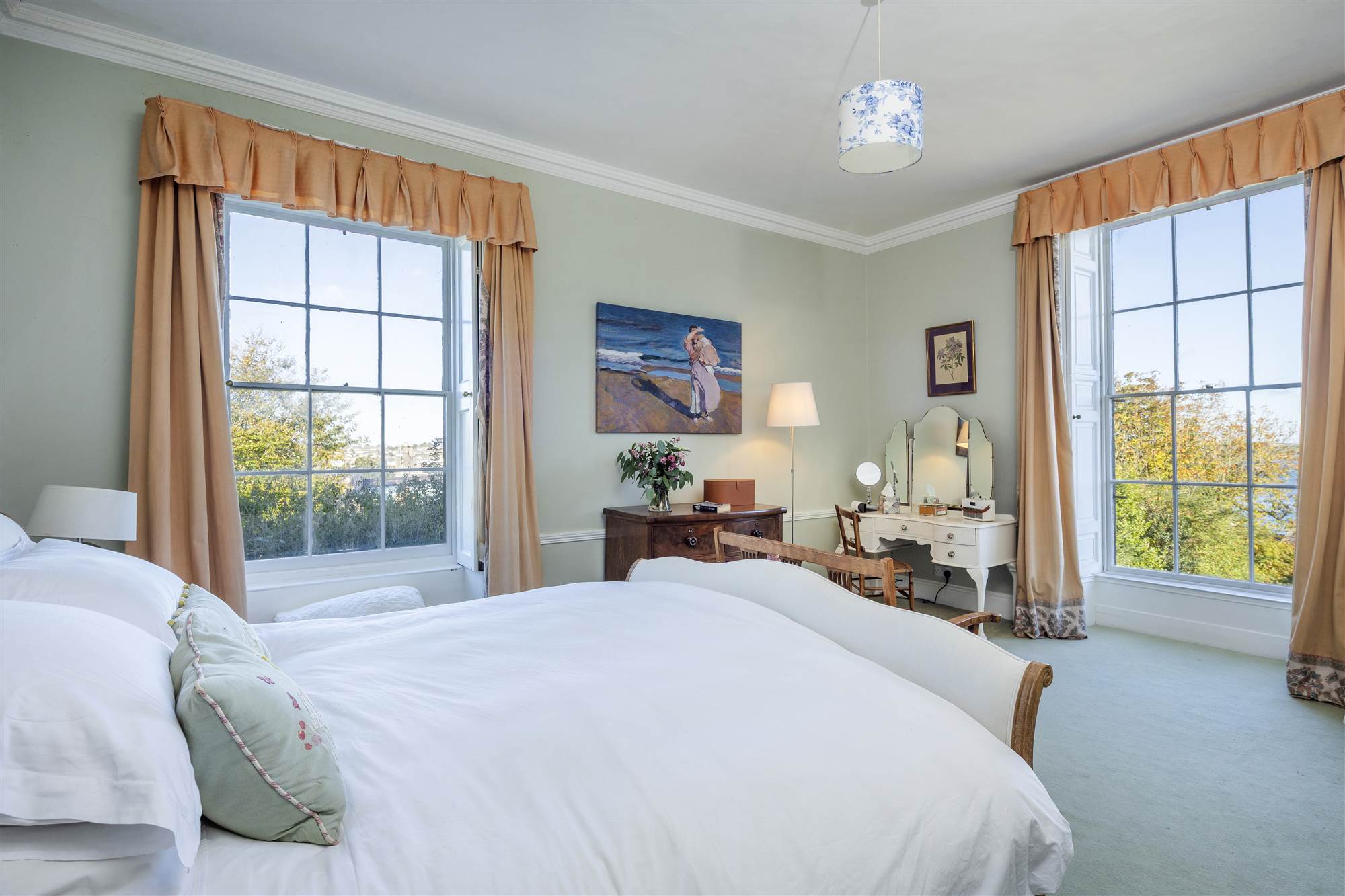 The ground floor offers elegant and well-proportioned reception spaces with a mix of solid wood and carpeted flooring. There is excellent scope for family living and entertaining, with two spacious reception rooms featuring unique sea views and period fireplaces. The kitchen and adjoining areas link naturally within the main house, providing an easy flow between the principal rooms.